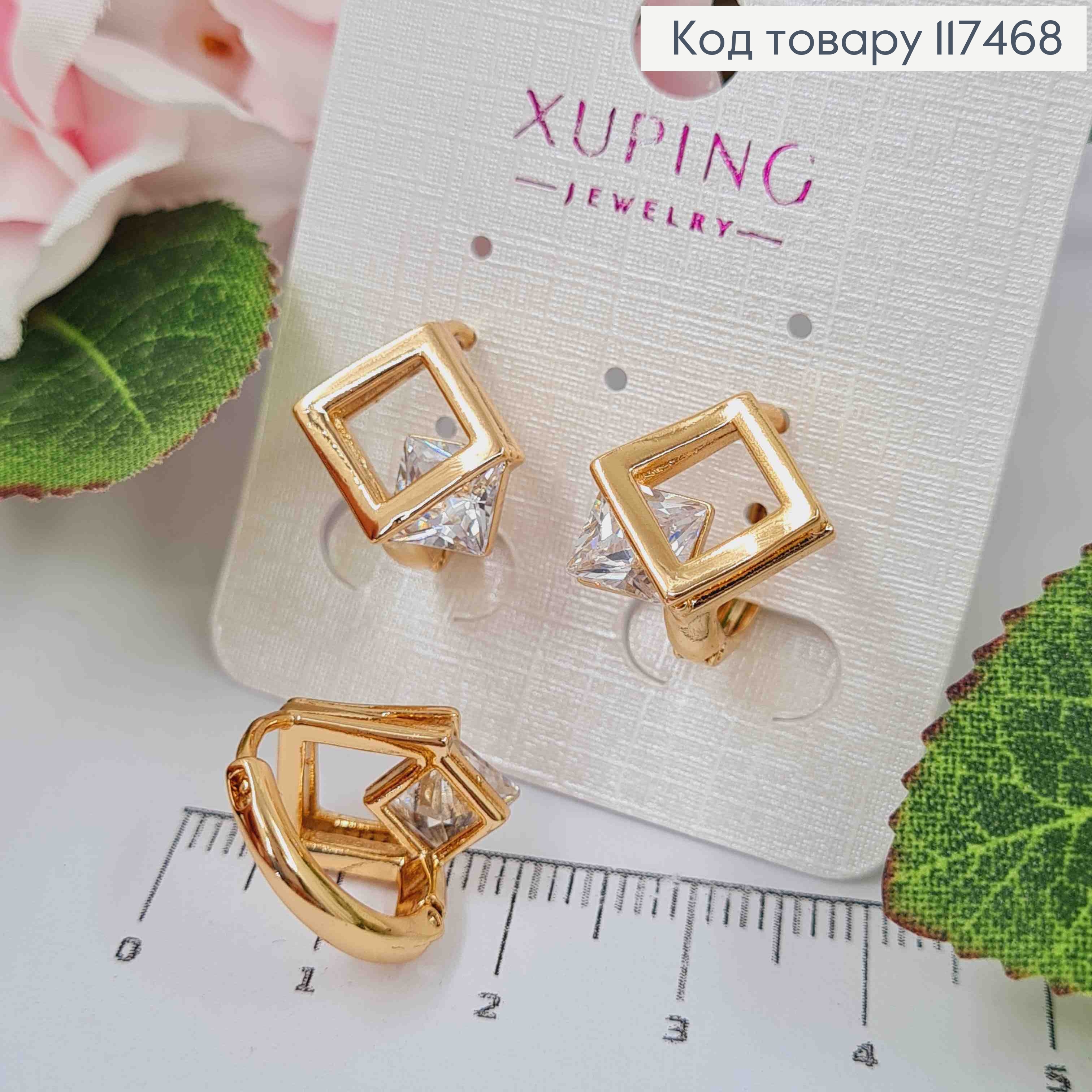 Серьги с квадратным блестящим камнем, 1,9см, английская застежка, Xuping 18K 110257 фото