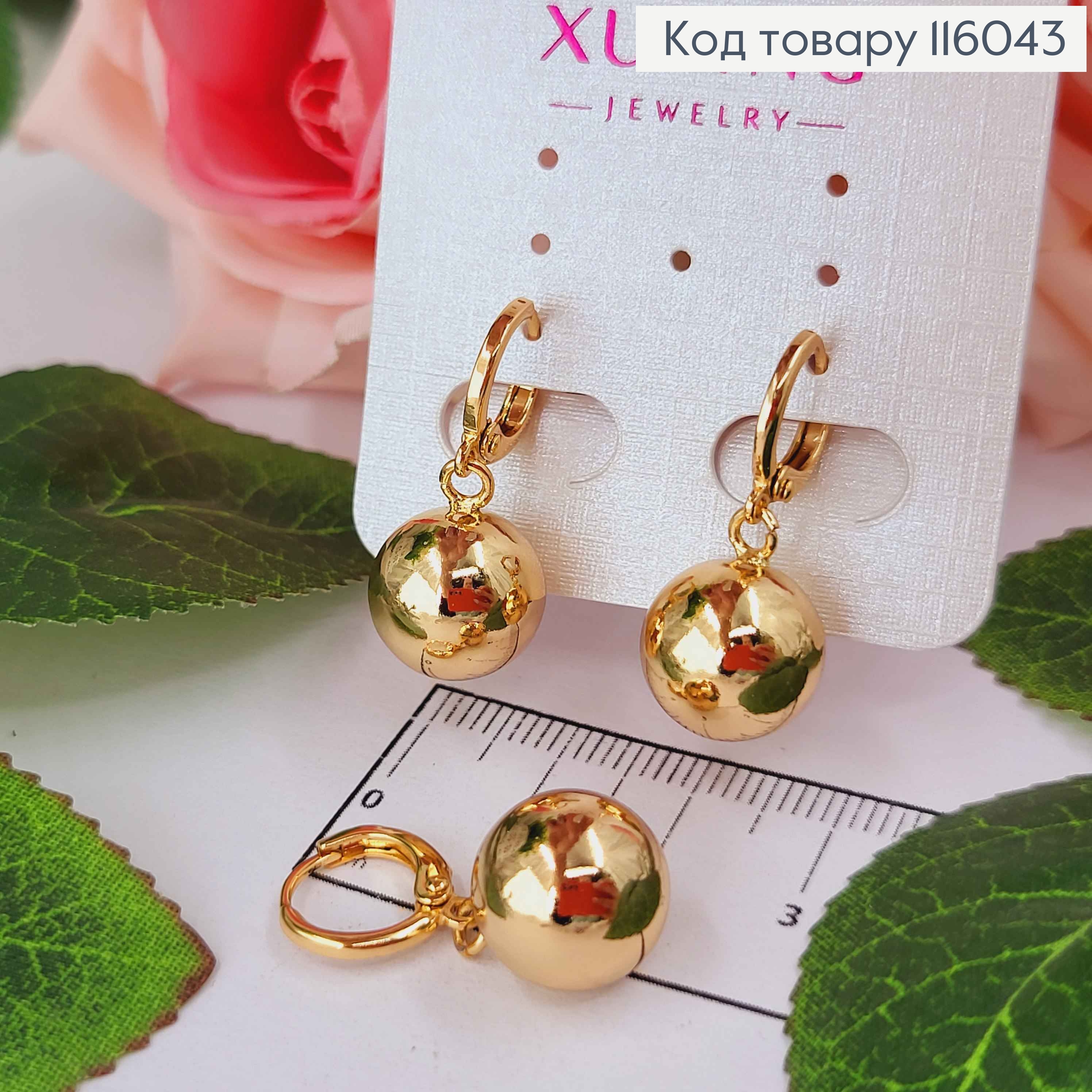 Серьги кольца с подвесками шариками 1,3см, Xuping 18K