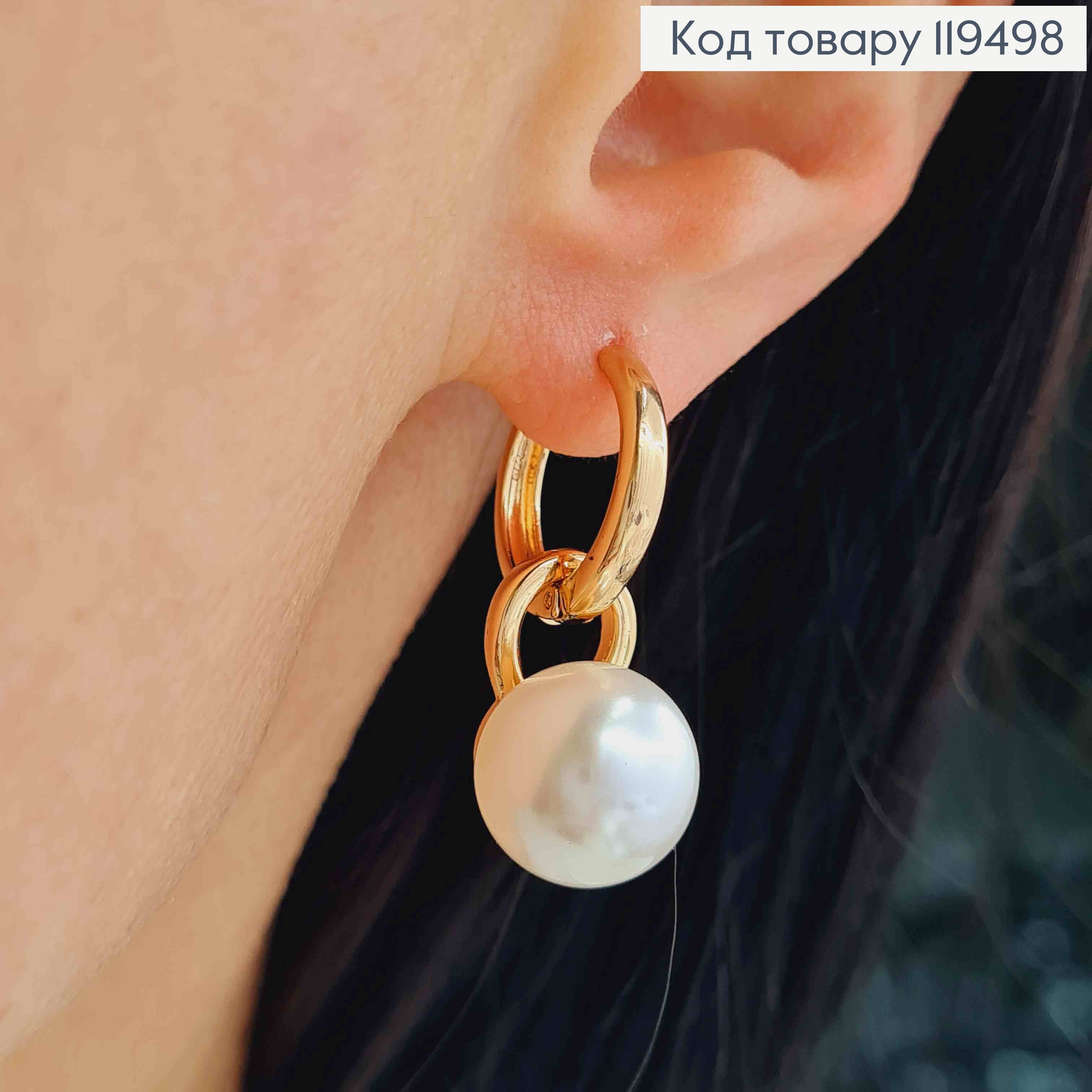 Серьги кольца с подвеской Жемчужка (1,2см), диаметр 1,5см, Xuping 18K