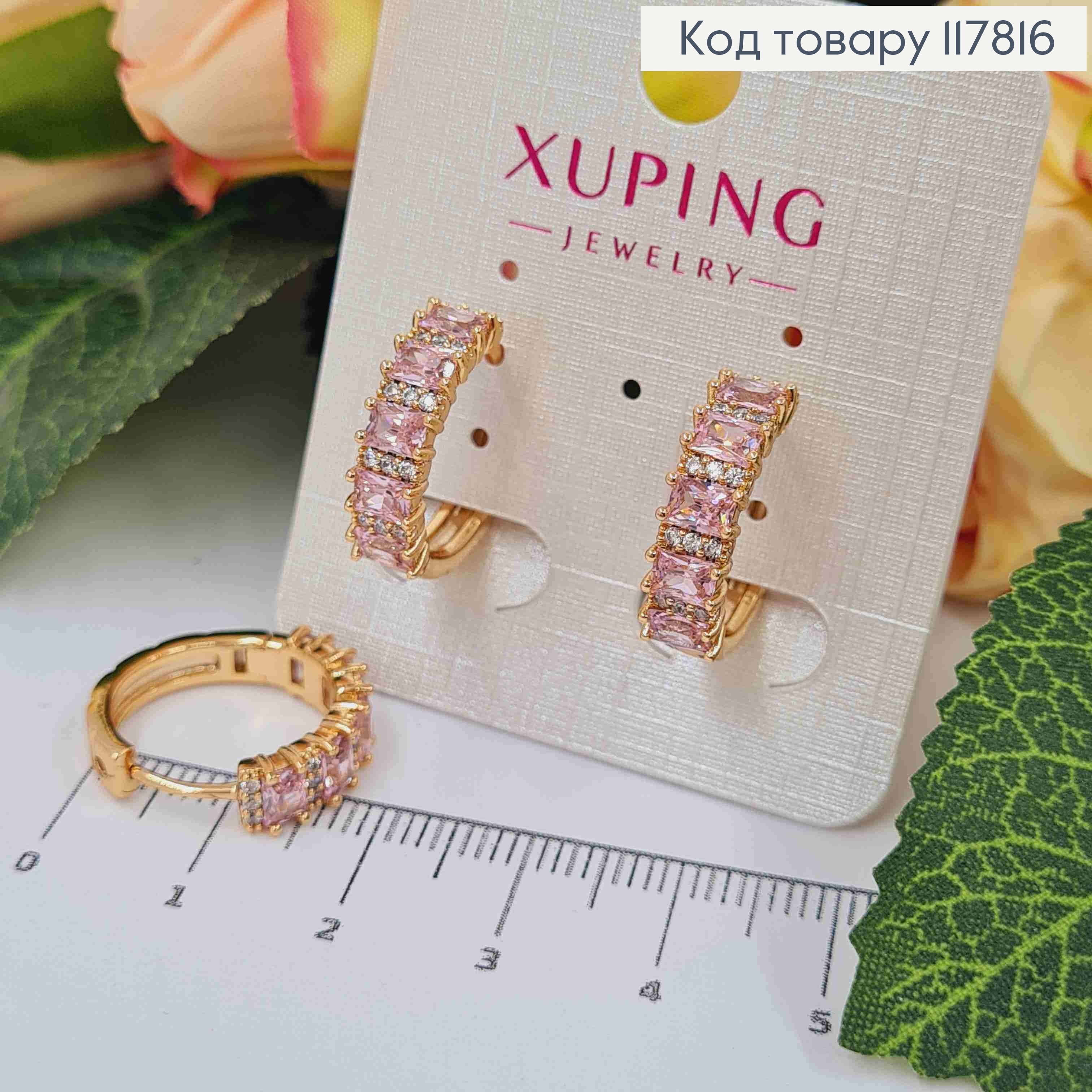 Серьги кольца, с Розовыми камешками, 1,9см, Xuping 18K