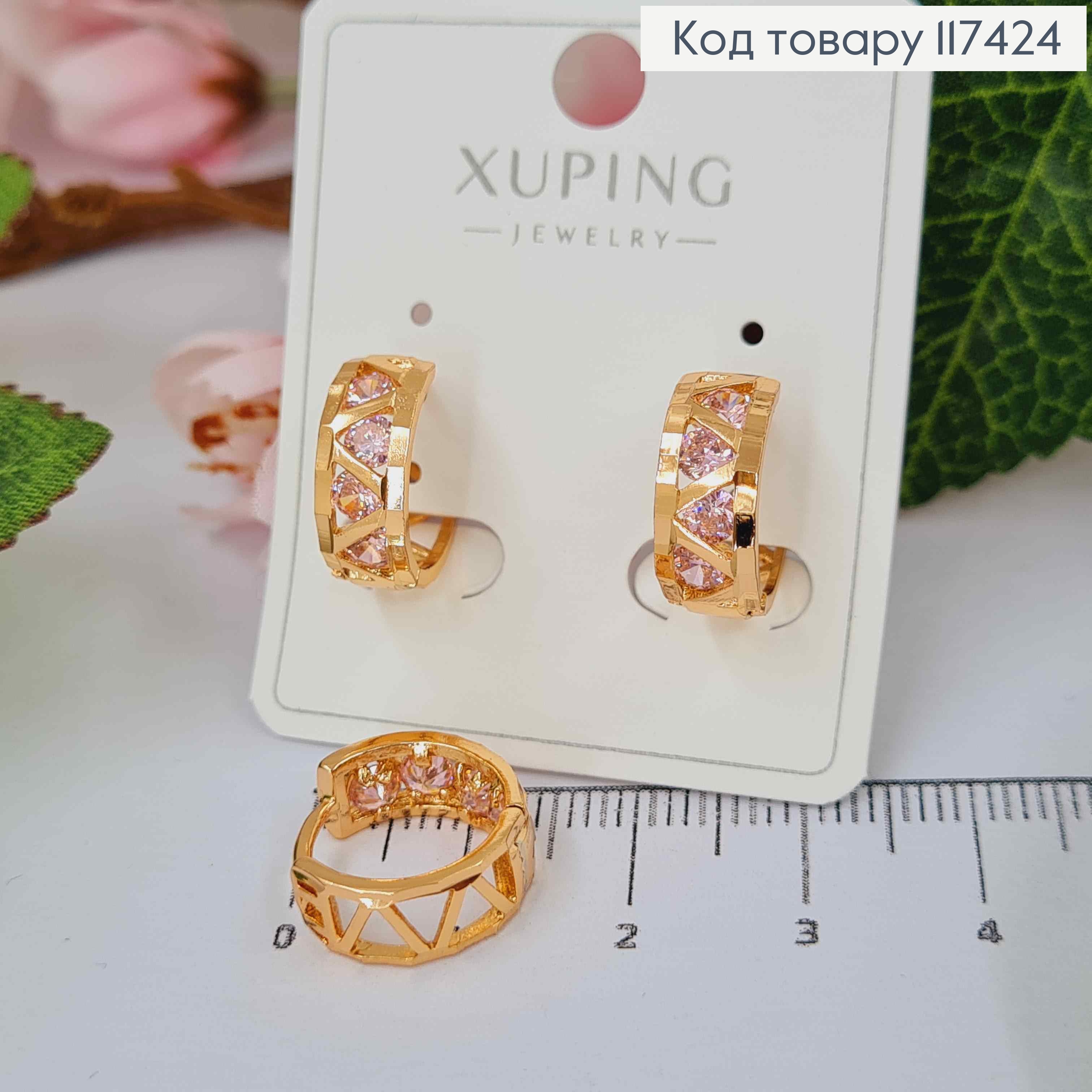 Серьги Кольца с Розовыми камешками, диаметр 1,4, ширина 6мм, XUPING 18K
