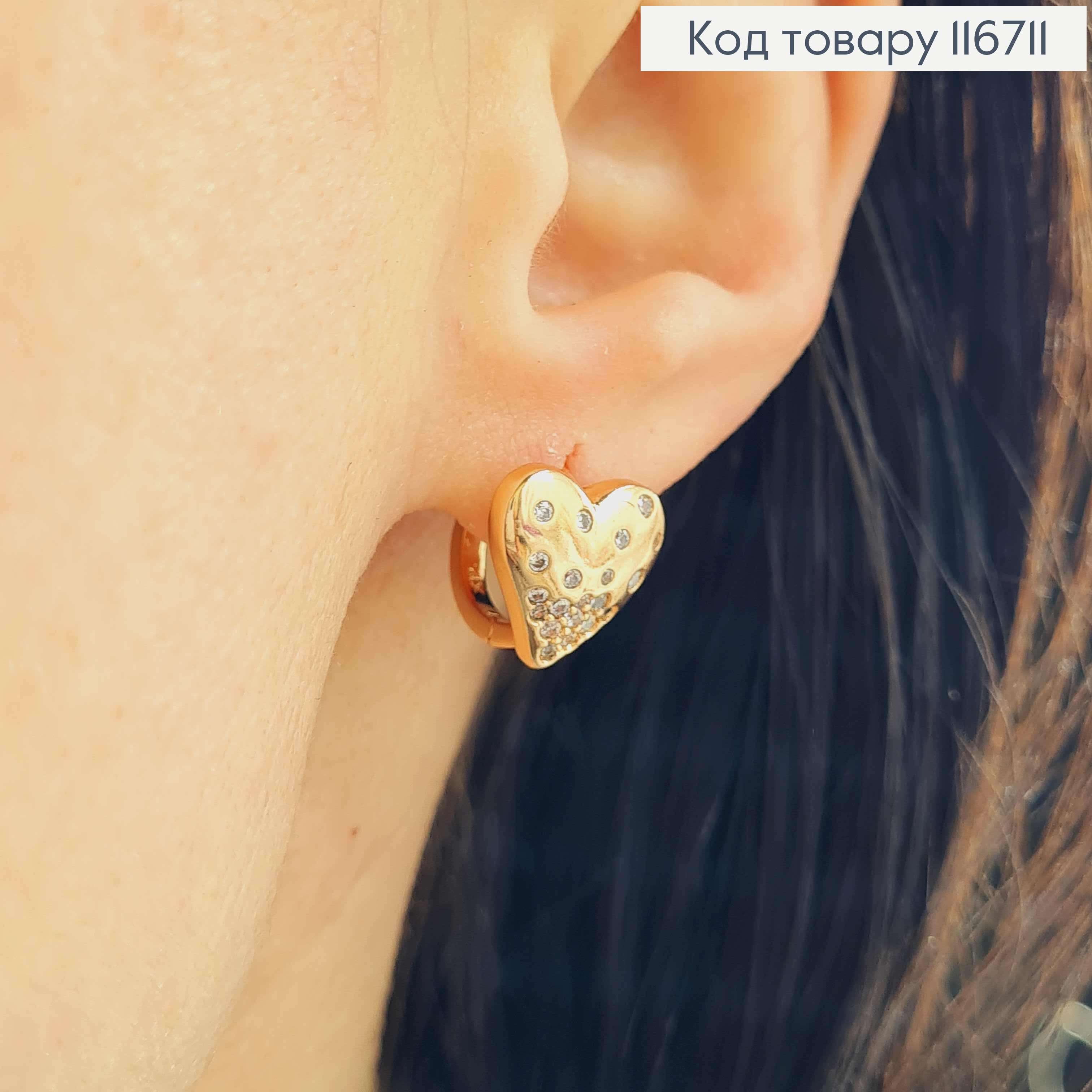 Серьги кольца, с Сердечком в камешках, 1,5см, диаметр 1,5см, Xuping 18K