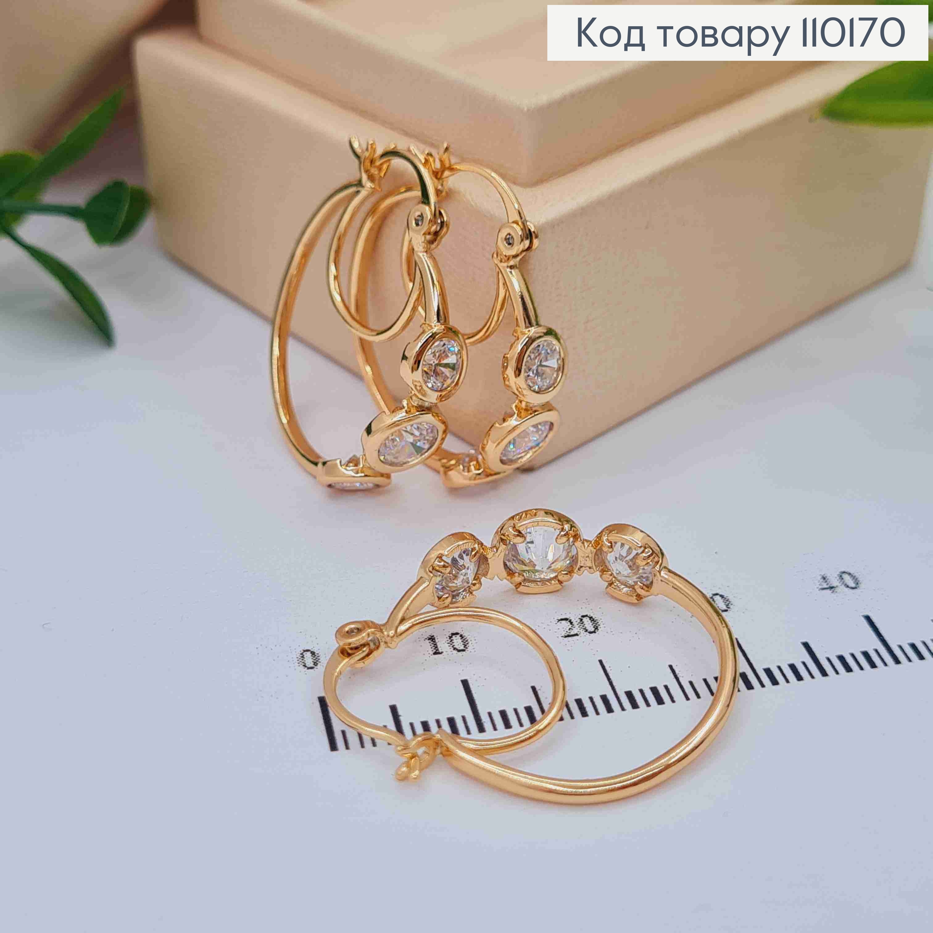 Серьги кольца с тремя Блестящими камешками, диаметр 2,5см, застежка заколка, Xuping 18К