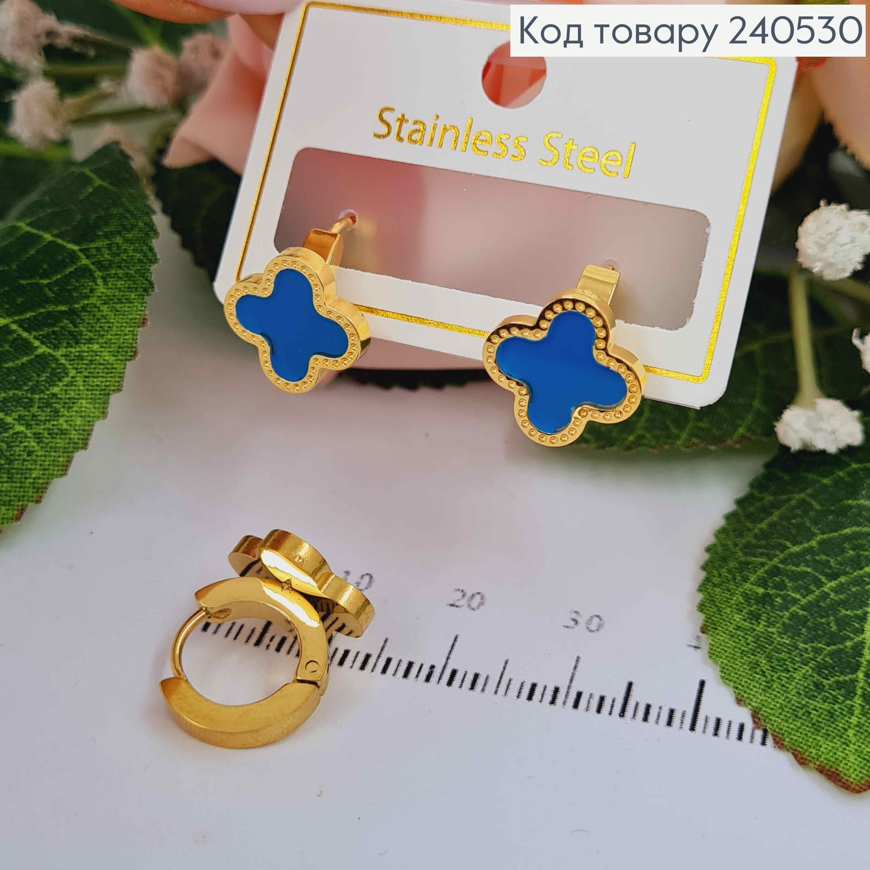Серьги кольца, лимонного цвета, с голубой эмалью, "Van Cleef", сталь Stainless Steel