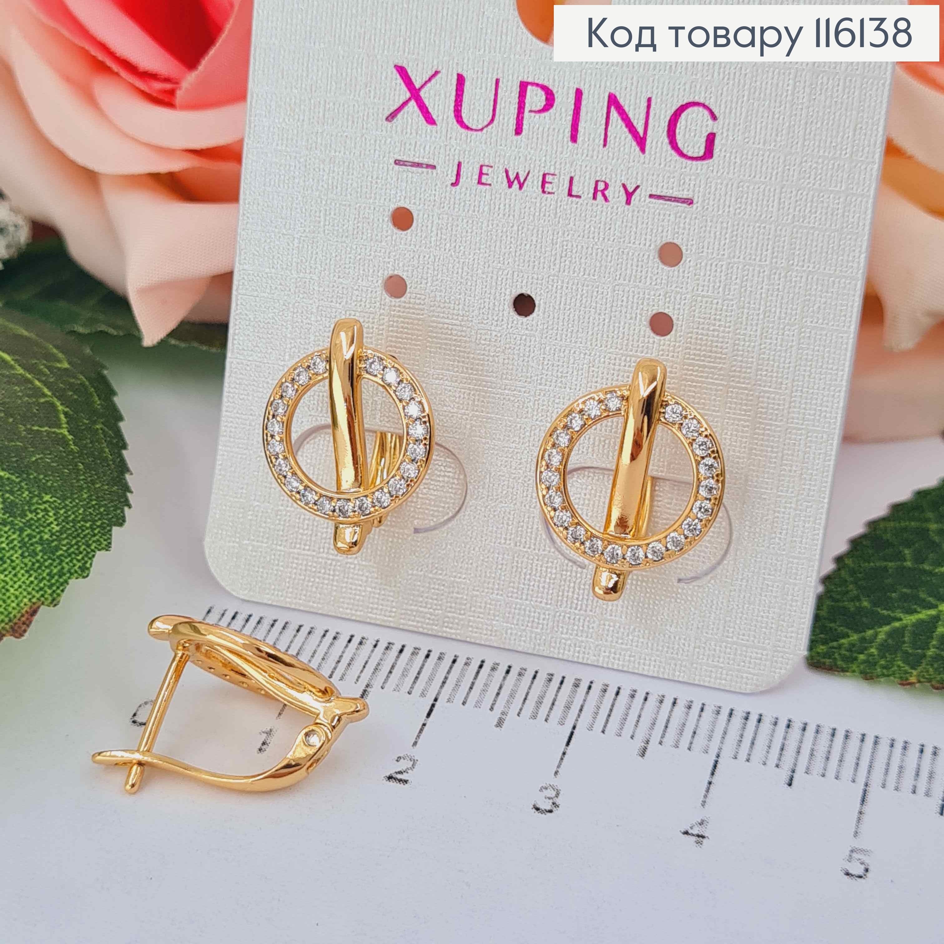 Серьги, Кольцо в камнях, с линией, 1,3см, англ. застежка, Xuping 18К