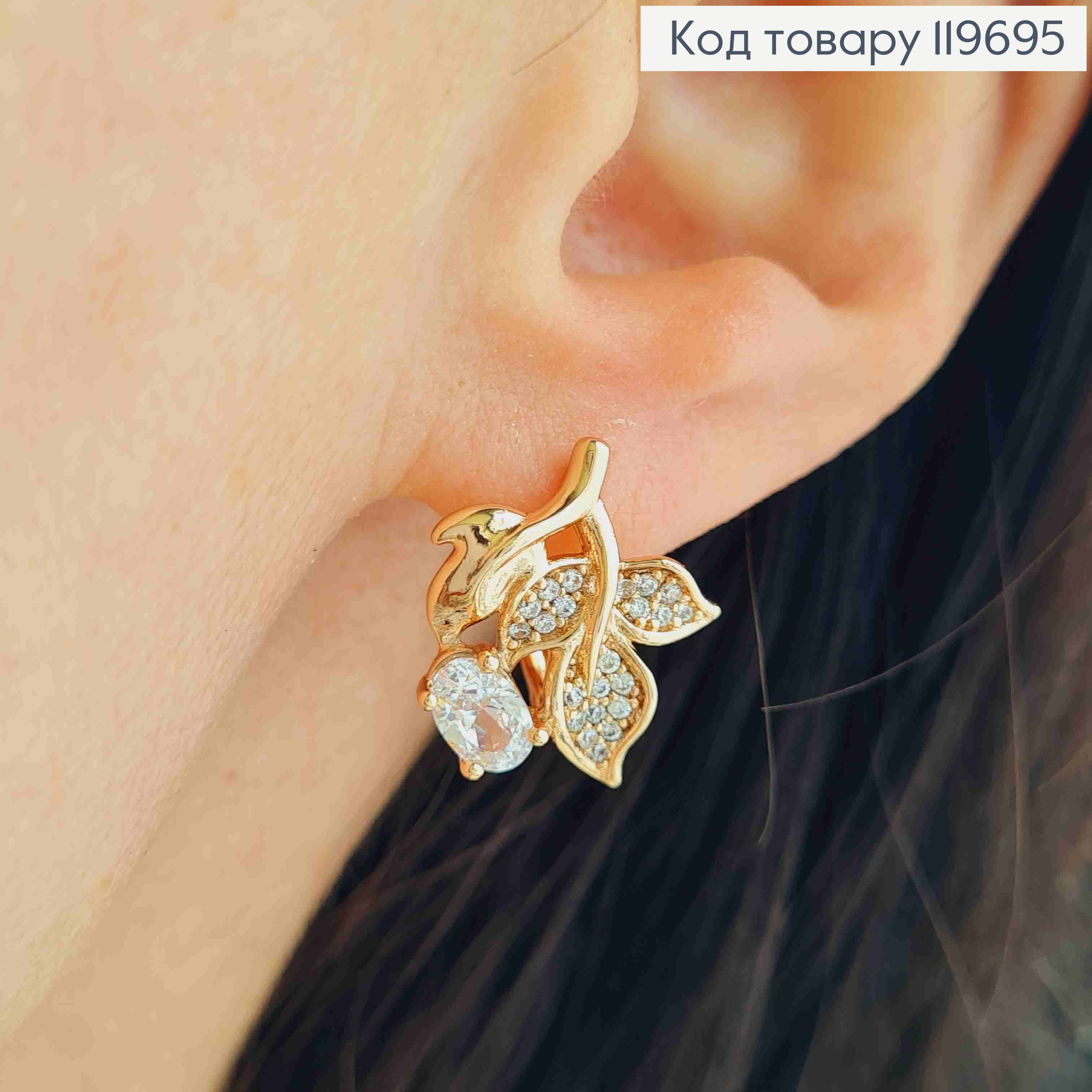 Серьги "Кленовый Листочек" с Блестящим камнем, дл. 1,7см, англ. застежка, Xuping 18К