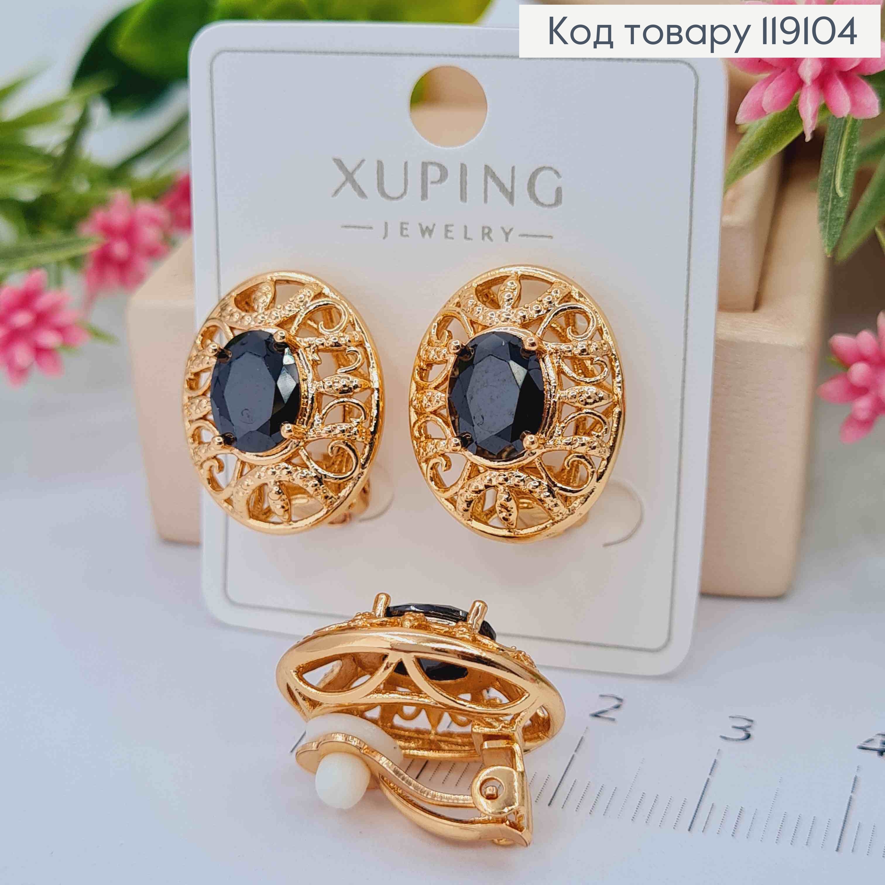 Серьги-клипсы "Ажурные" с овальным черным камнем, 2см, XUPING 18K