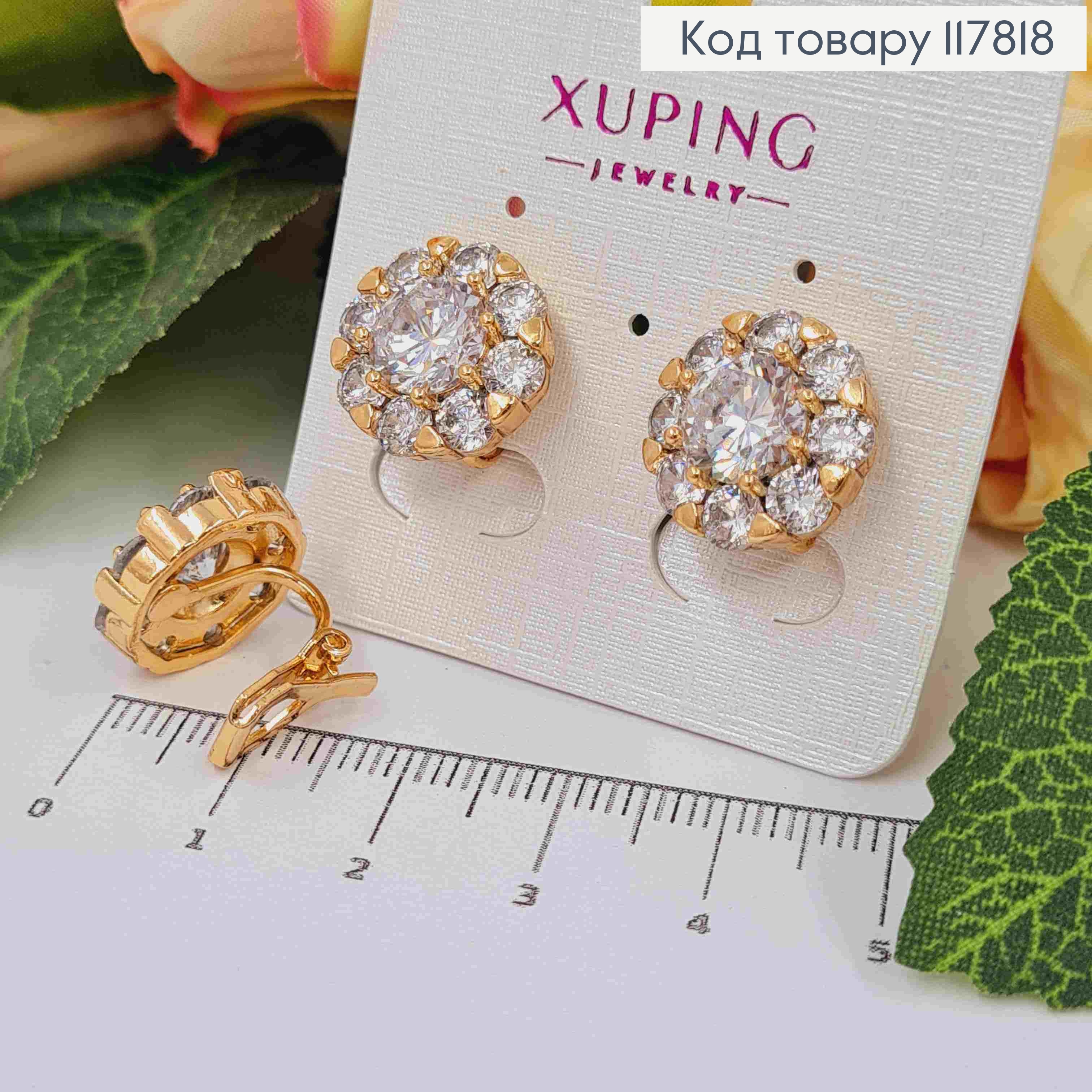 Серьги клипсы, цветочек из блестящих камешков, 1,5см, Xuping 18K
