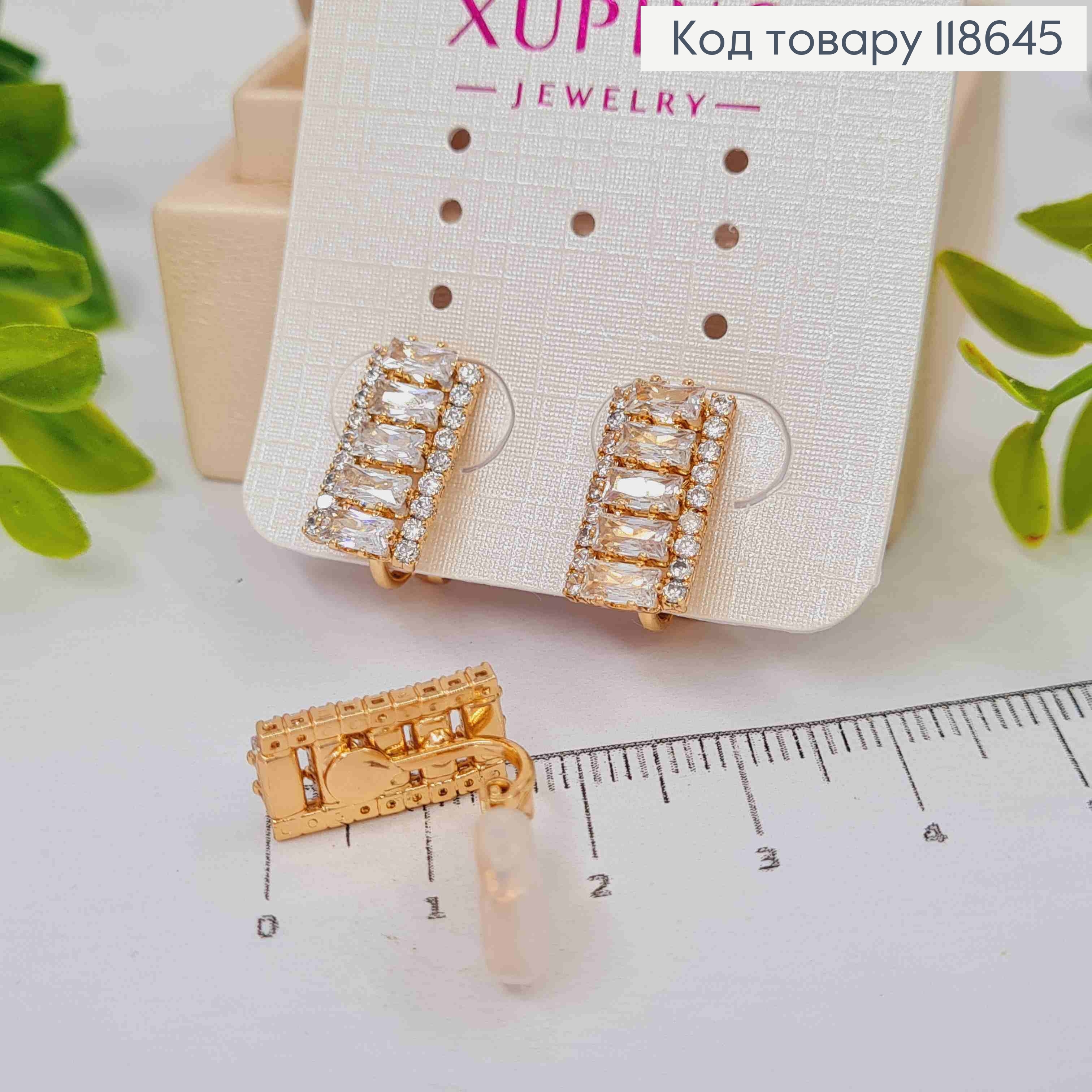 Серьги кольца "Прямоугольные" украшены Блестящими камешками, длиной 2,4см, застежка заколка, Xuping 18К 110199 фото