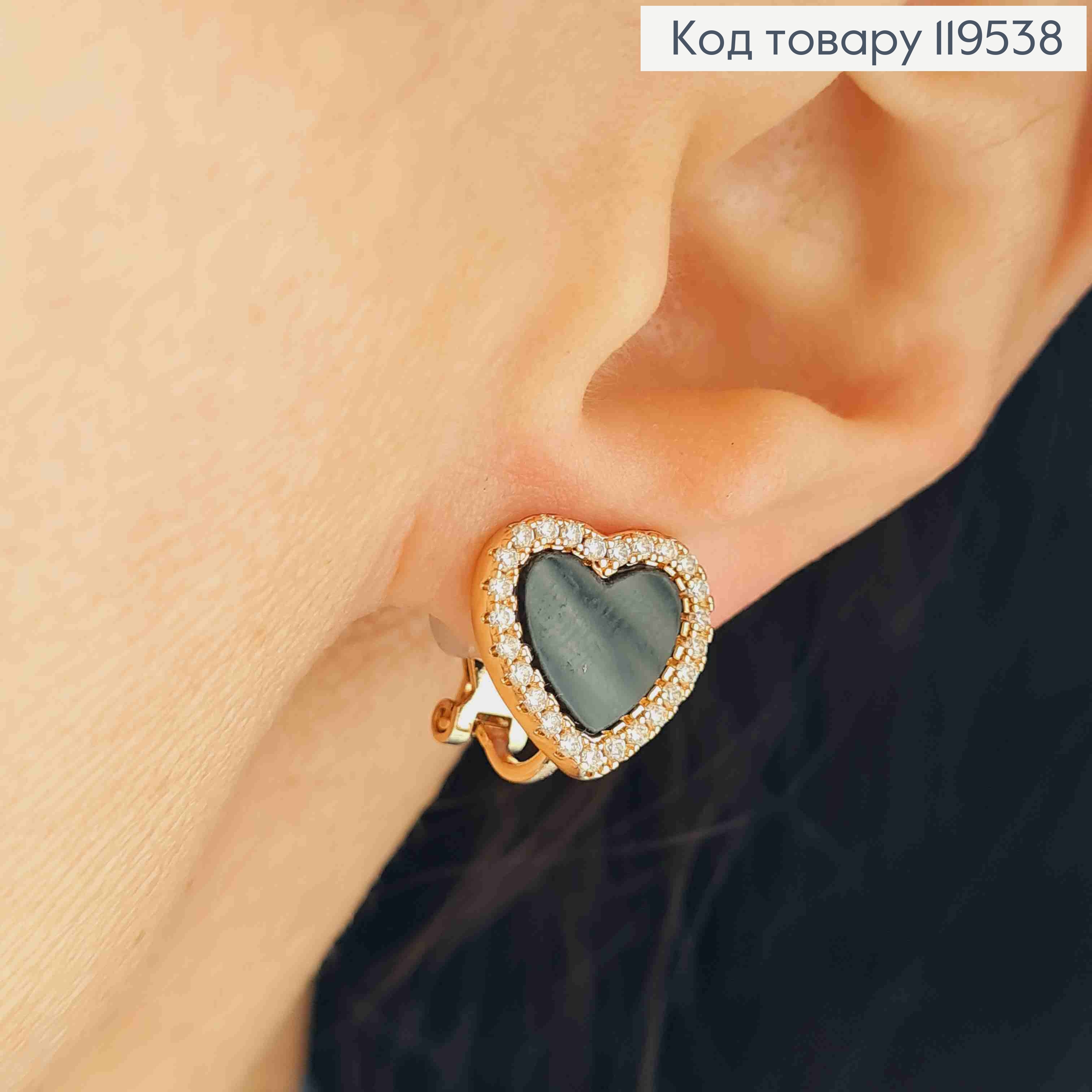 Серьги-клипсы "Сердце" с Черной эмалью и Камешками, 1,3см, Xuping 18K