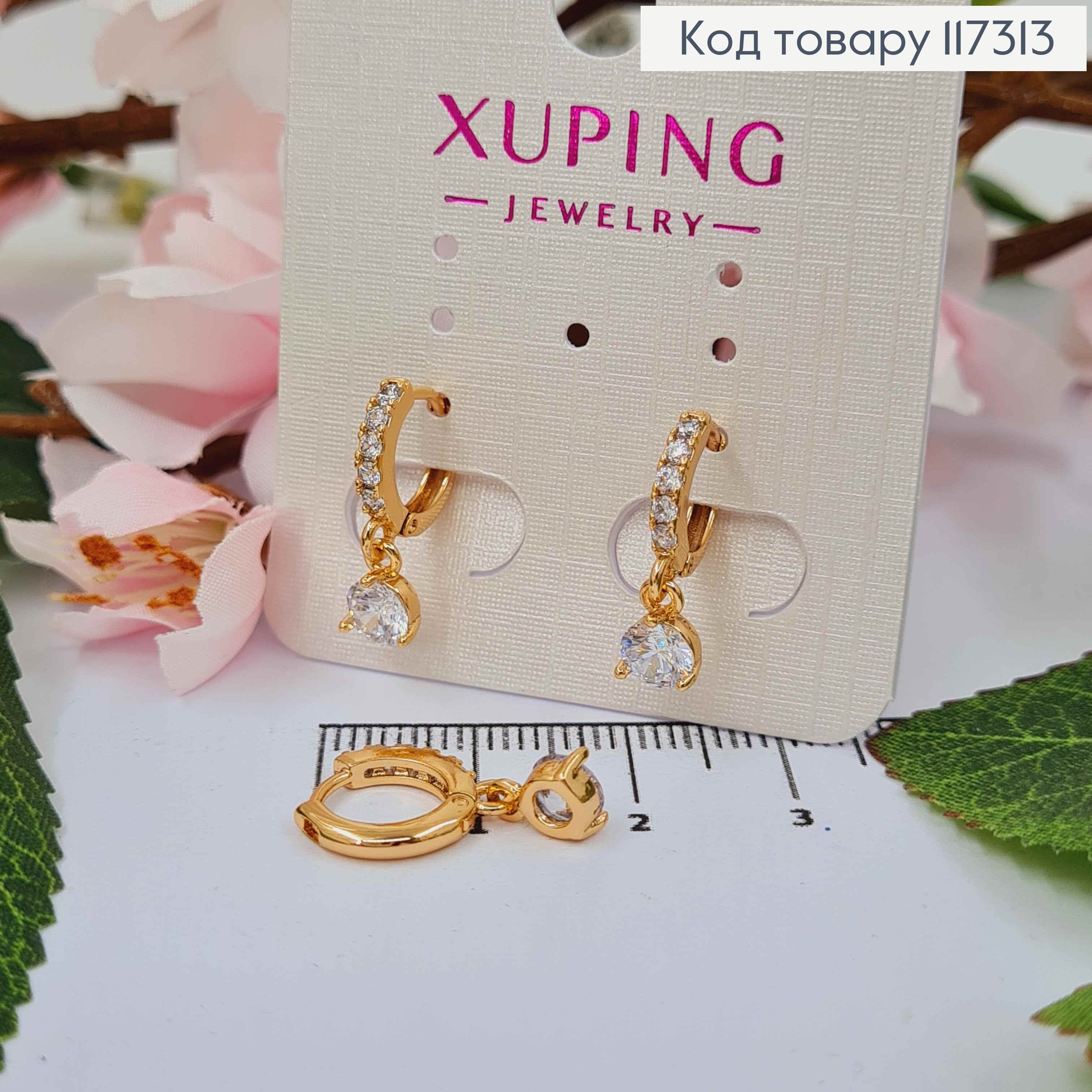 Серьги Колечки в камешках с подвесным камушком в треугольной оправе, 1,1см, Xuping 18К