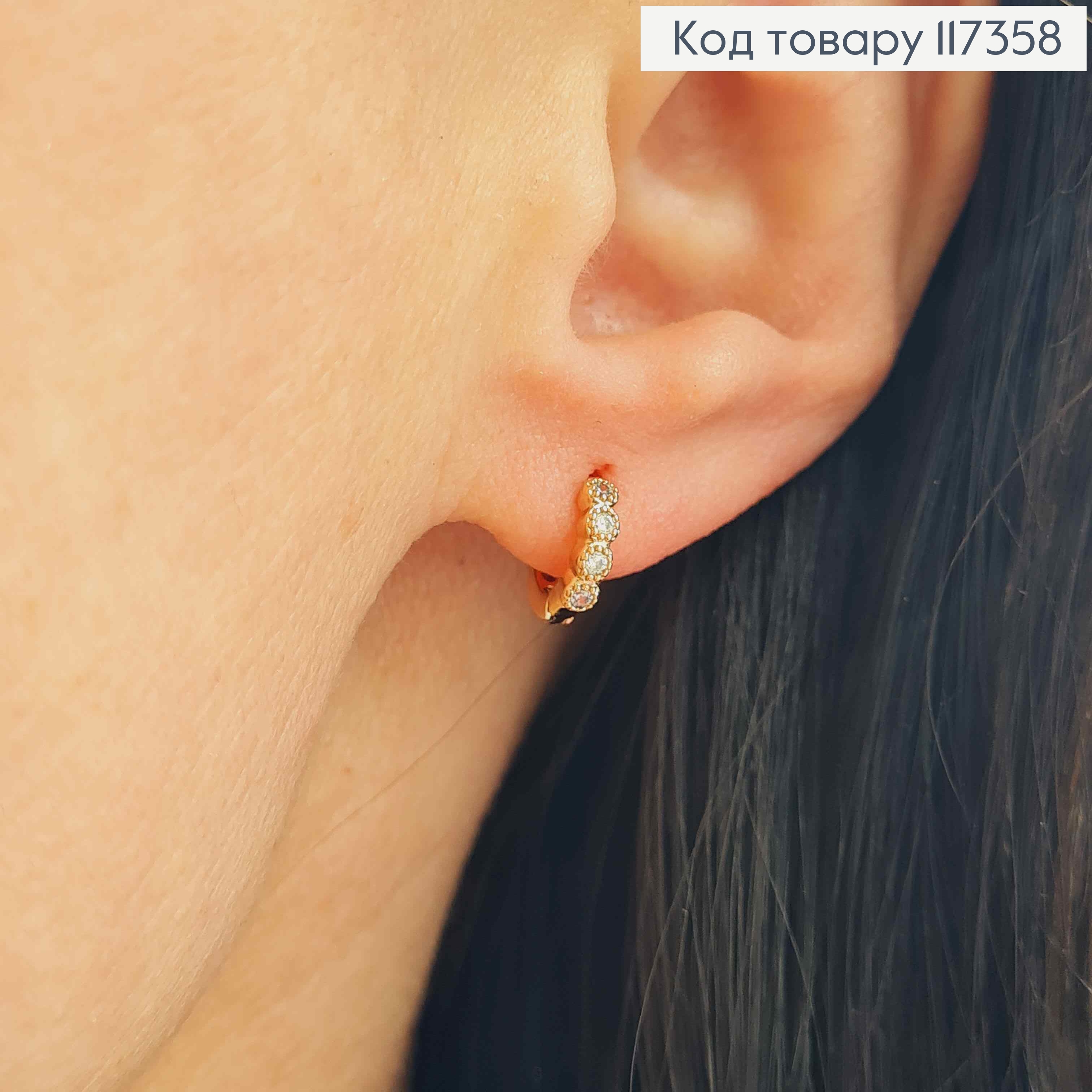 Серьги колечки, с четырьмя круглыми камешками 1см, Xuping 18K