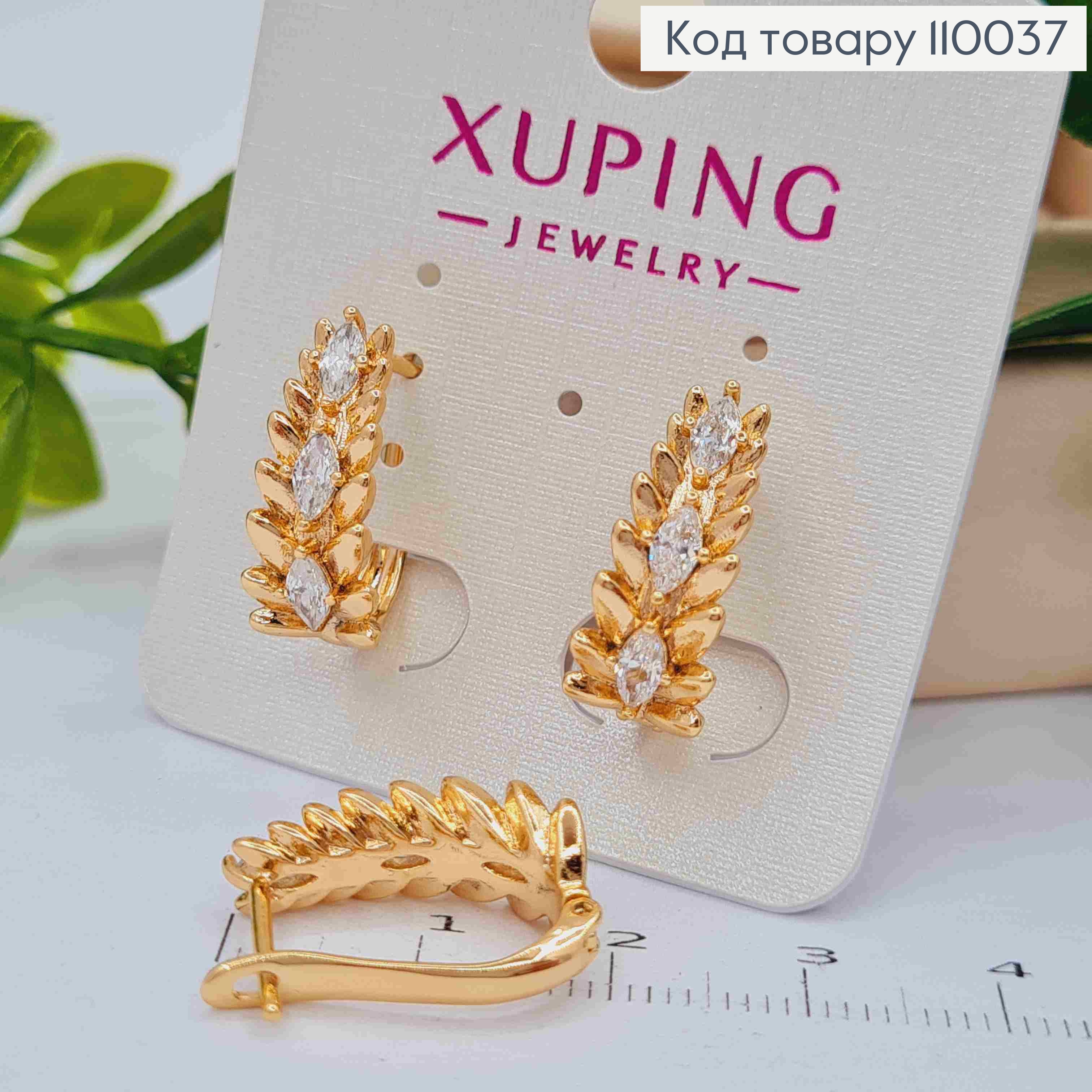 Серьги "Колоски" с Блестящими камешками, дл.1,8см, английская застежка, Xuping 18K
