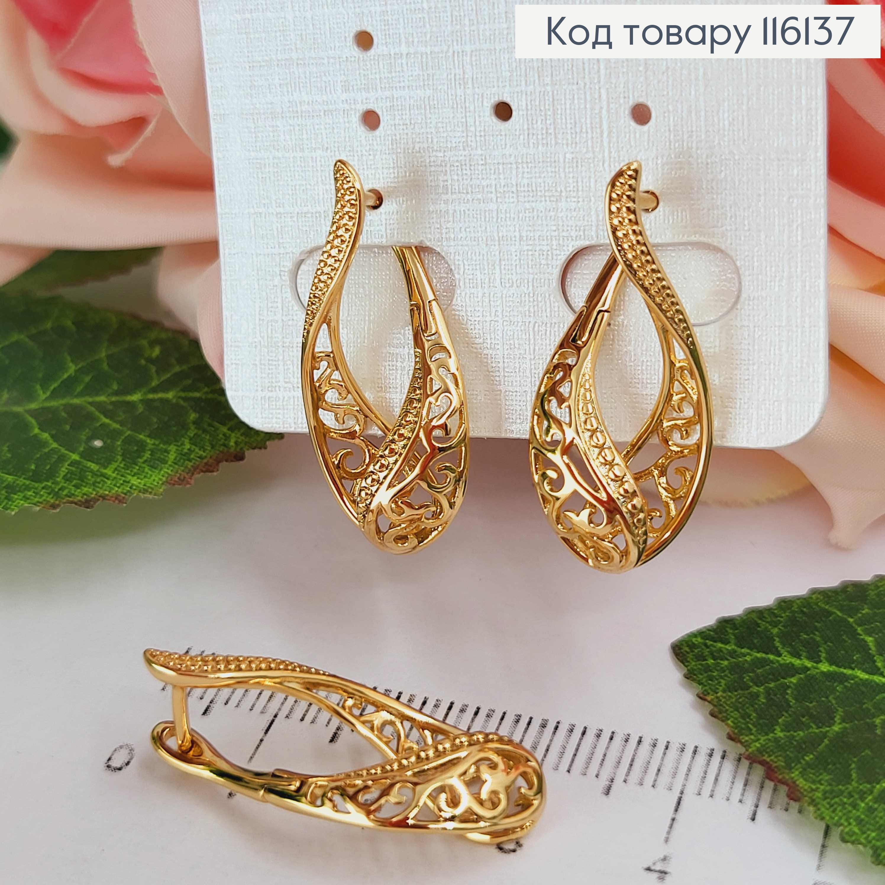 Серьги, корзиночки ажурные, 3см, англ. застежка, Xuping 18К