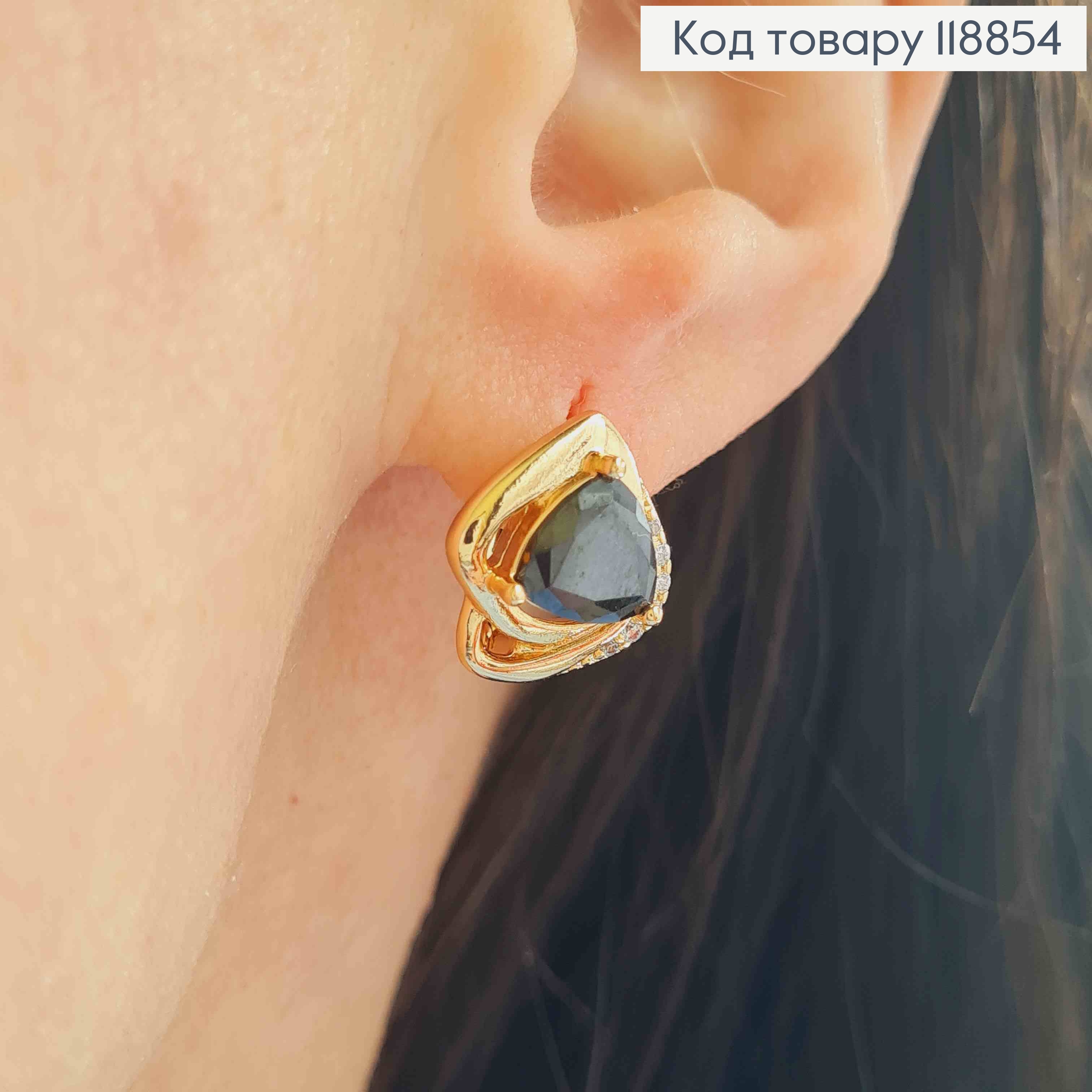 Серьги "Космическая Капелька" с Черным камнем, 1,4см, английская застежка, Xuping 18К