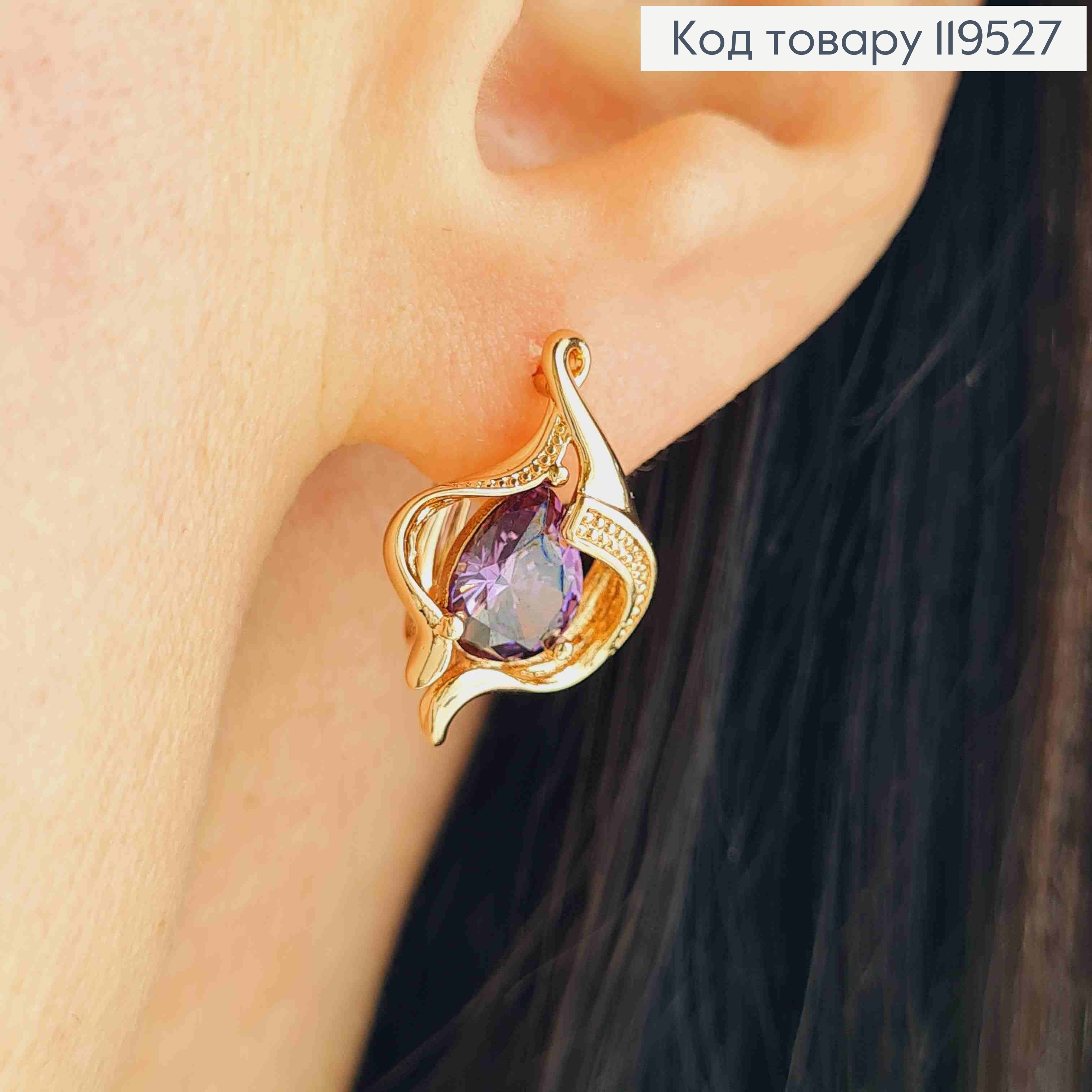 Серьги "Космическая Каплинка" с Фиолетовым камнем, 1,8см, английская застежка, Xuping 18K