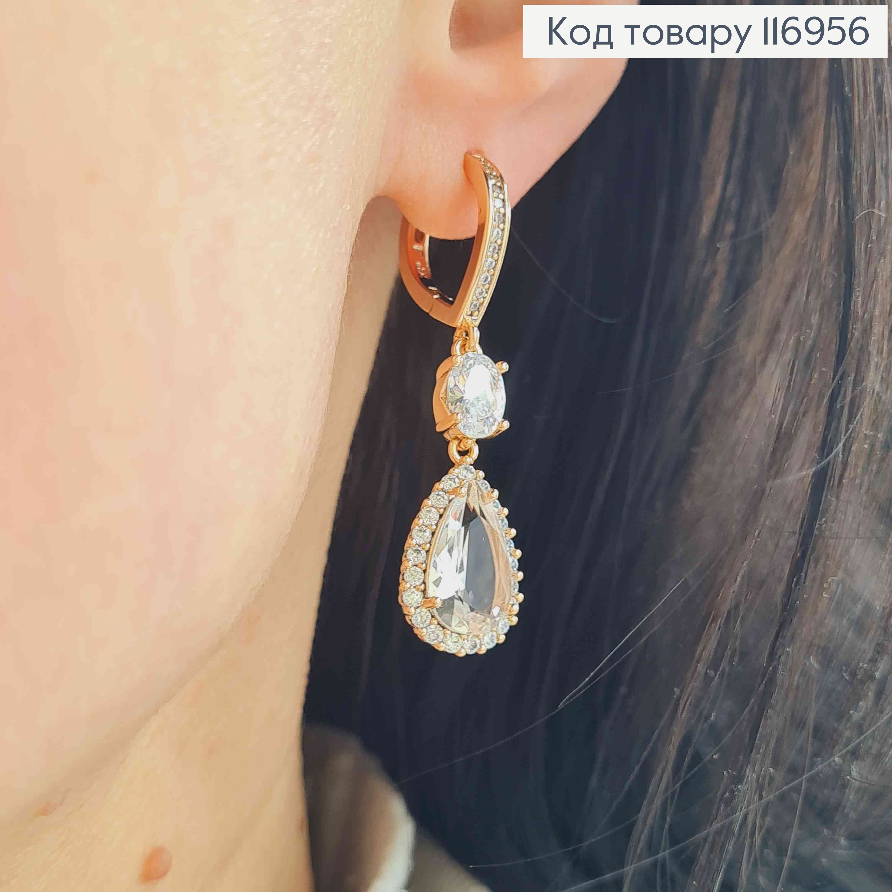 Серьги "Капля Океана" с подвеской Белым камнем, 3,5см, англ. зам. Xuping 18K