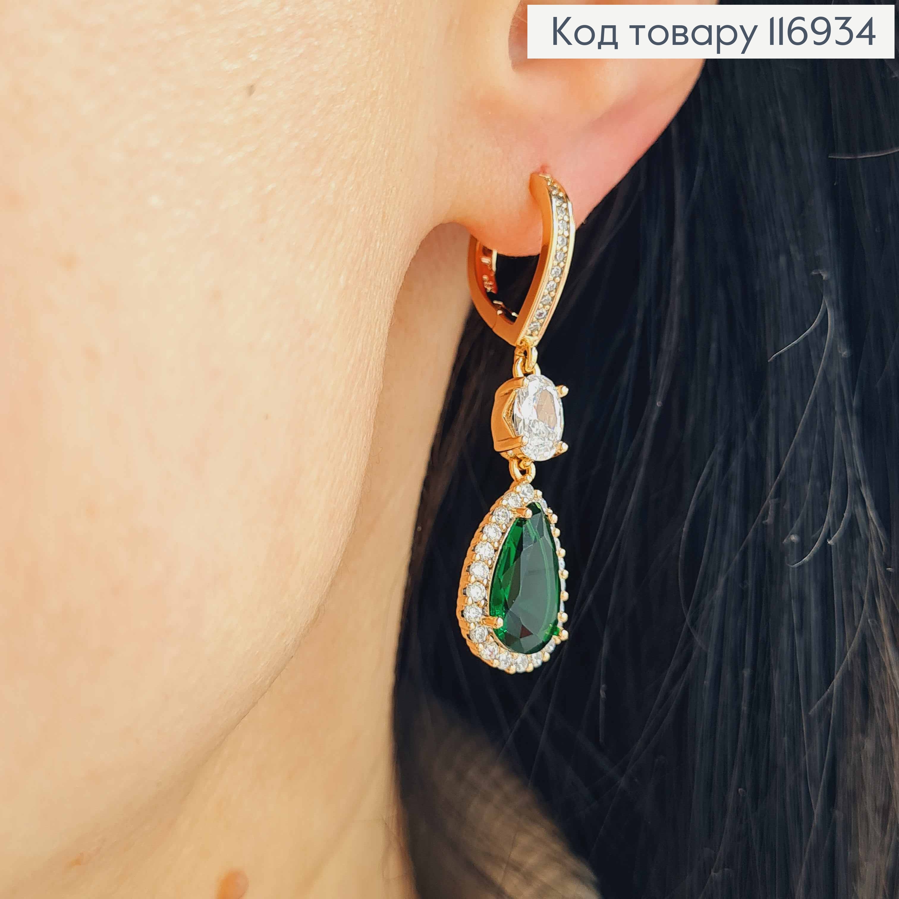 Серьги "Капля Океана" с подвеской Зеленым камнем, 3,5см, англ. зам. Xuping 18K