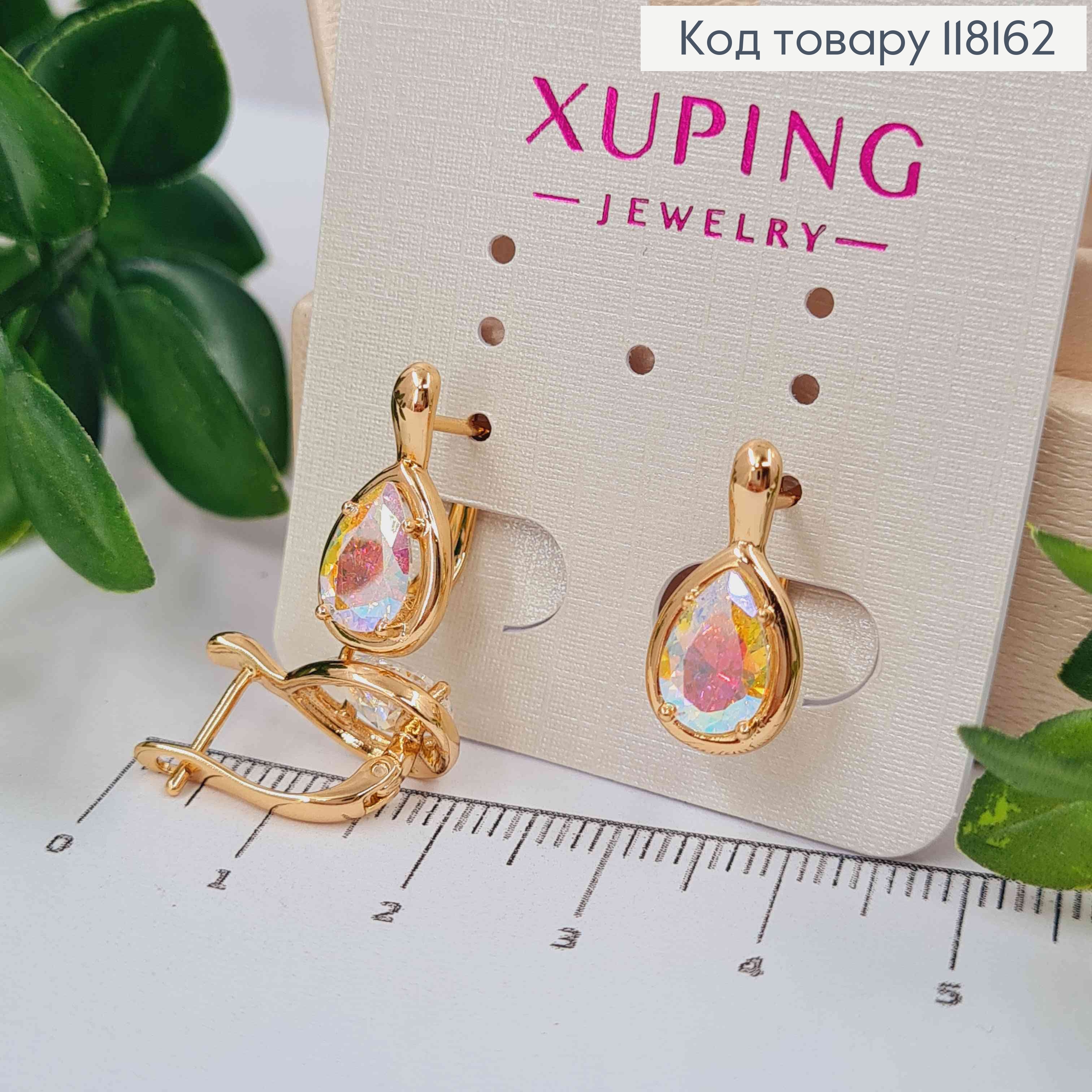 Серьги "Капелька Надежды" с Блестящим камнем Хамелеоном, 1,75 см, английская застежка, Xuping 18K