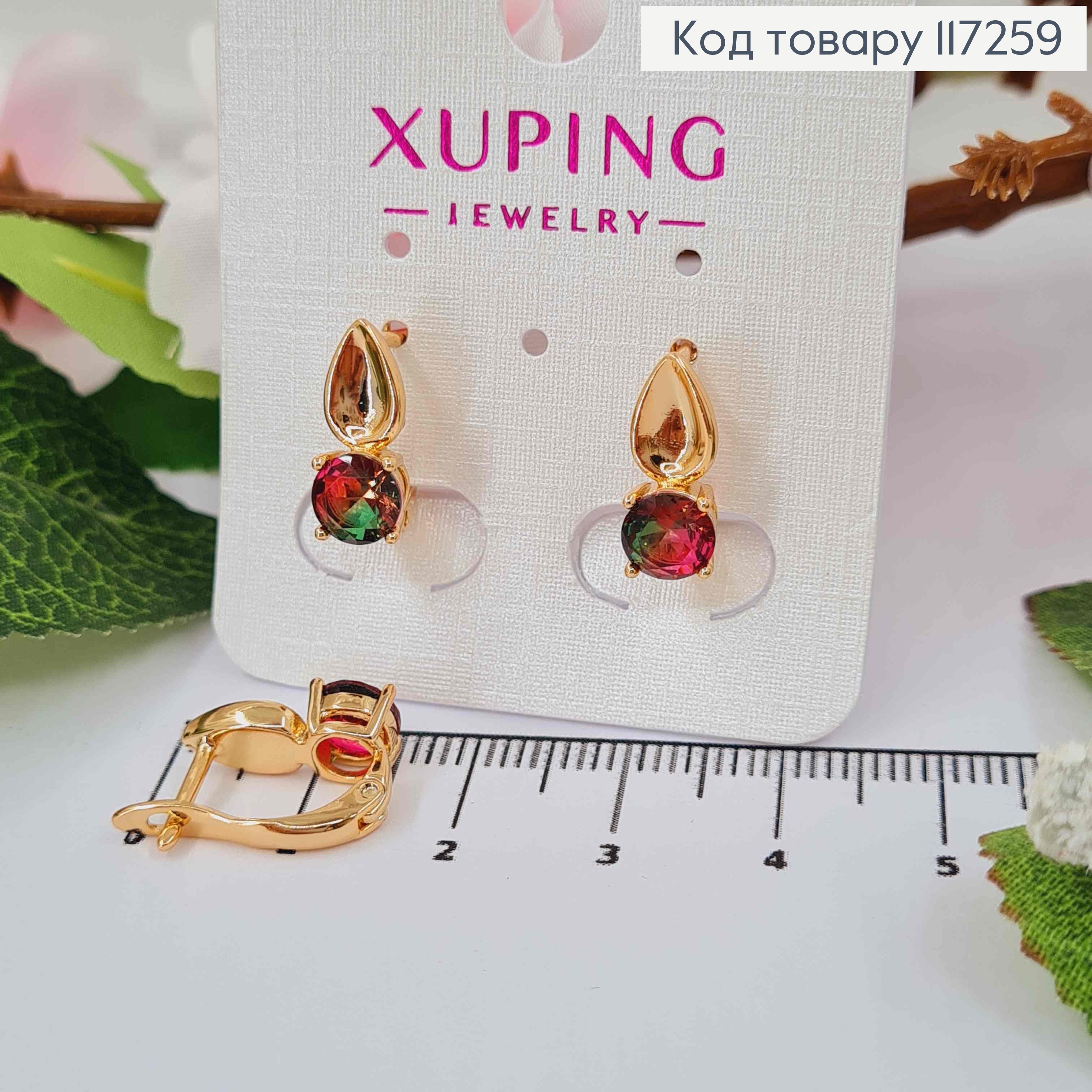 Серьги "Капелька" с разноцветным камнем, длина 1,5см, англ. застежка XUPING 18K