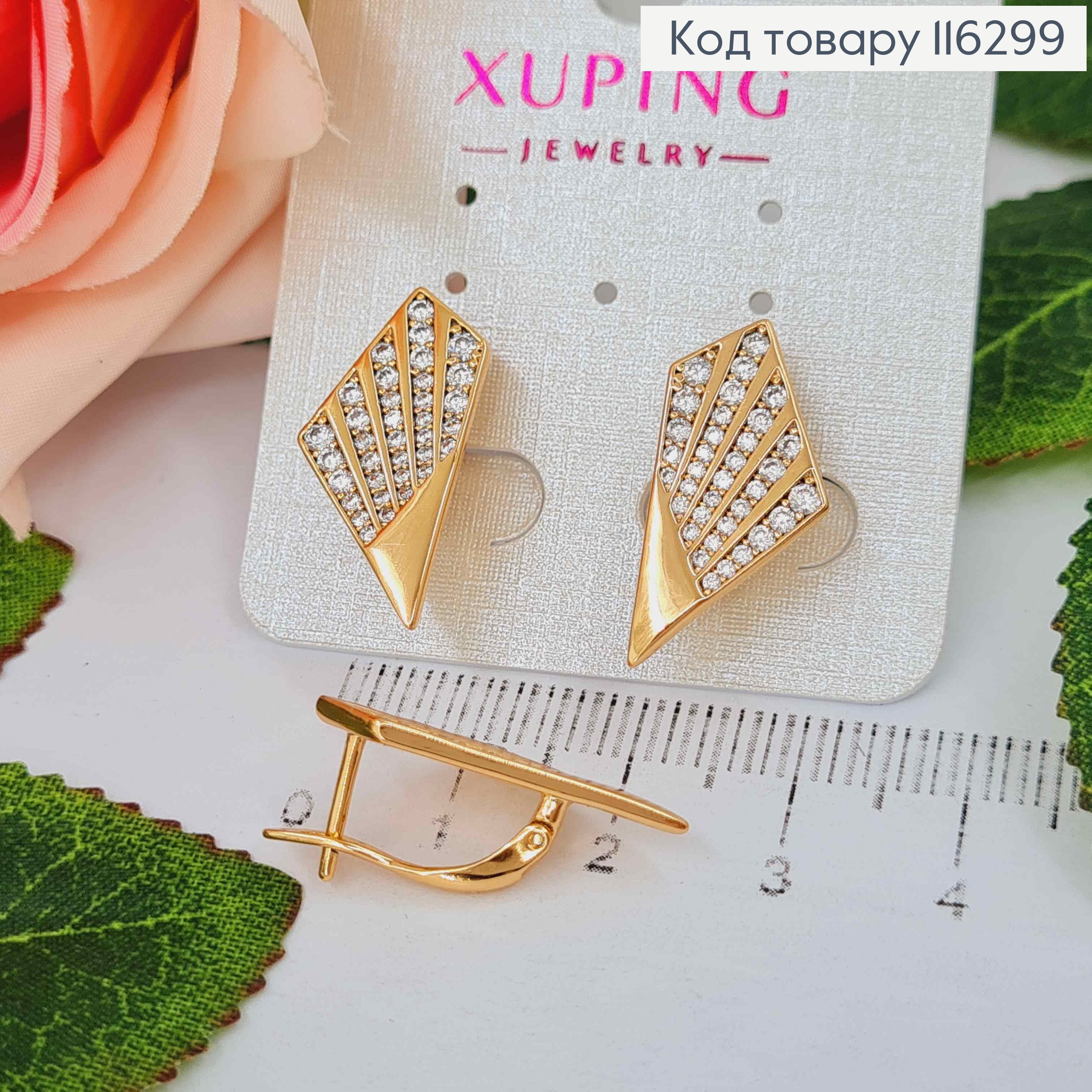 Серьги "Крылья Ласточки" в камешках, 2,5см, англ.зам. Xuping 18K
