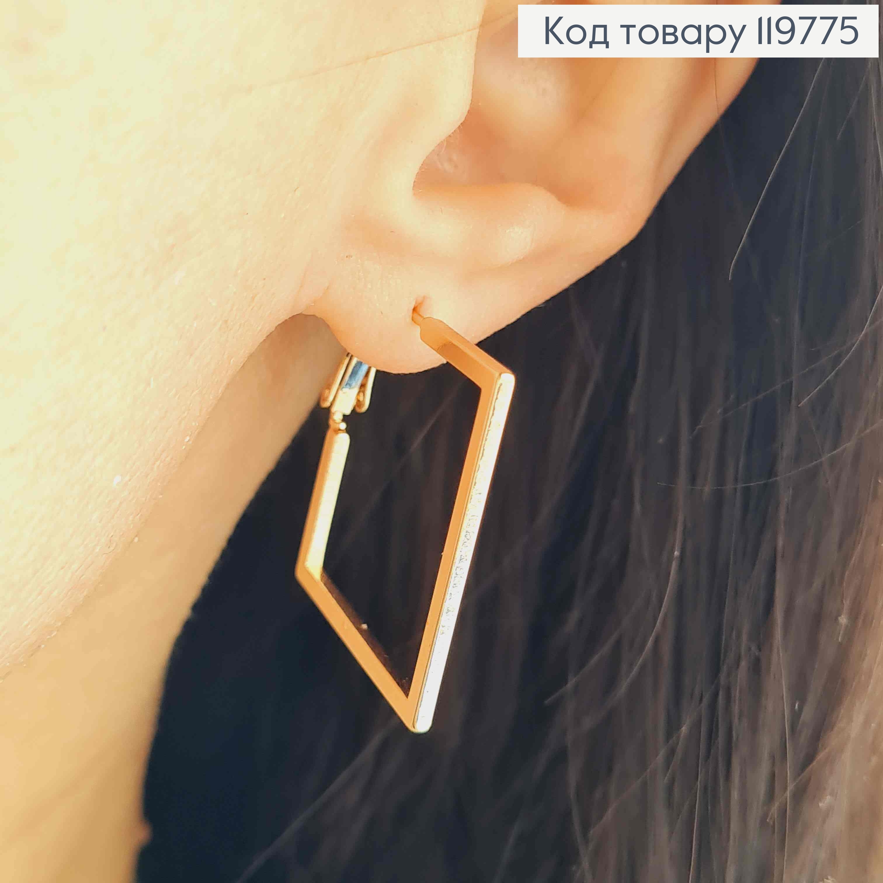 Серьги кольца "Прямоугольные" украшены Блестящими камешками, длиной 2,4см, застежка заколка, Xuping 18К 110199 фото