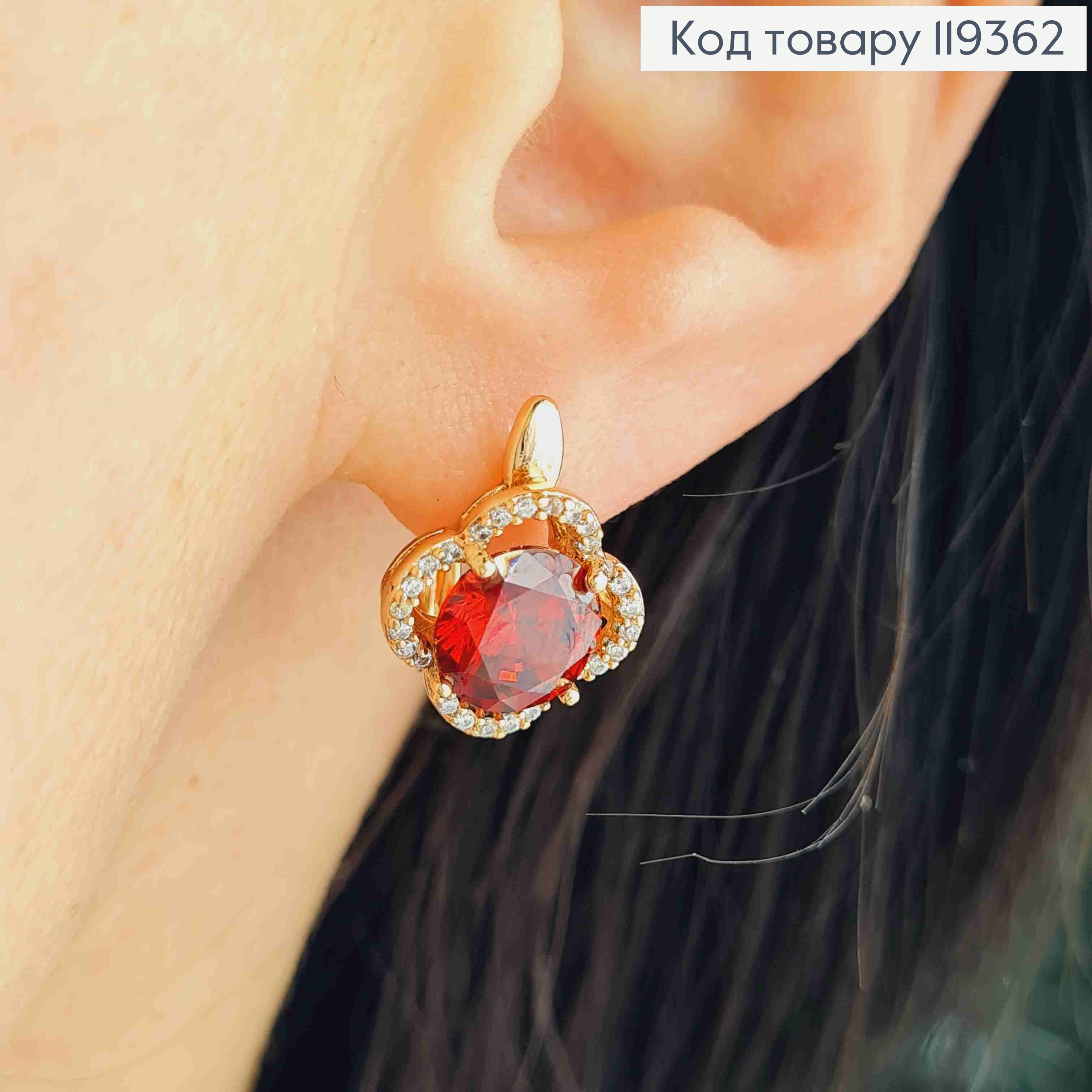 Серьги "Цветок Эдема" с Красным камнем, 1,5см, английская застежка, Xuping 18K