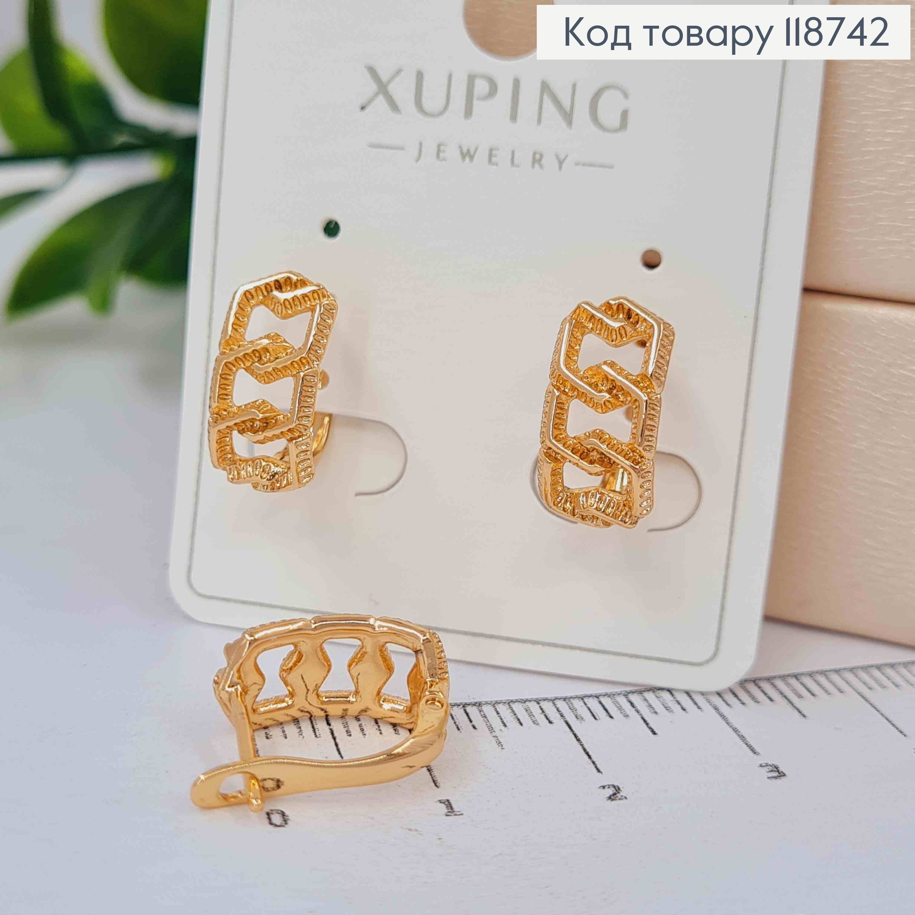 Серьги "Звенья" с тиснением, 1,4см, английская застежка, Xuping 18K