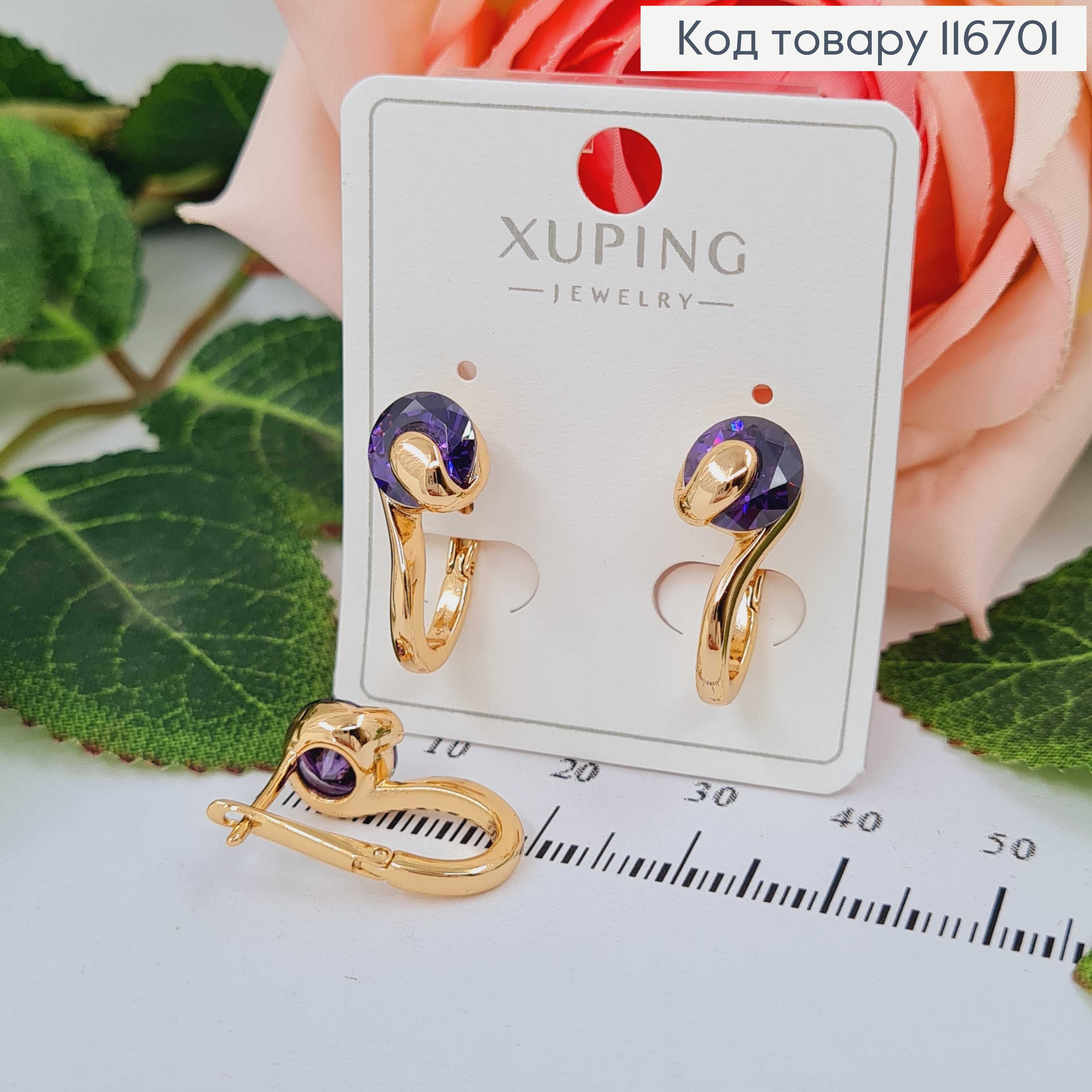 Серьги "Лебедь" с Фиолетовым камешком, 2см, Xuping 18К