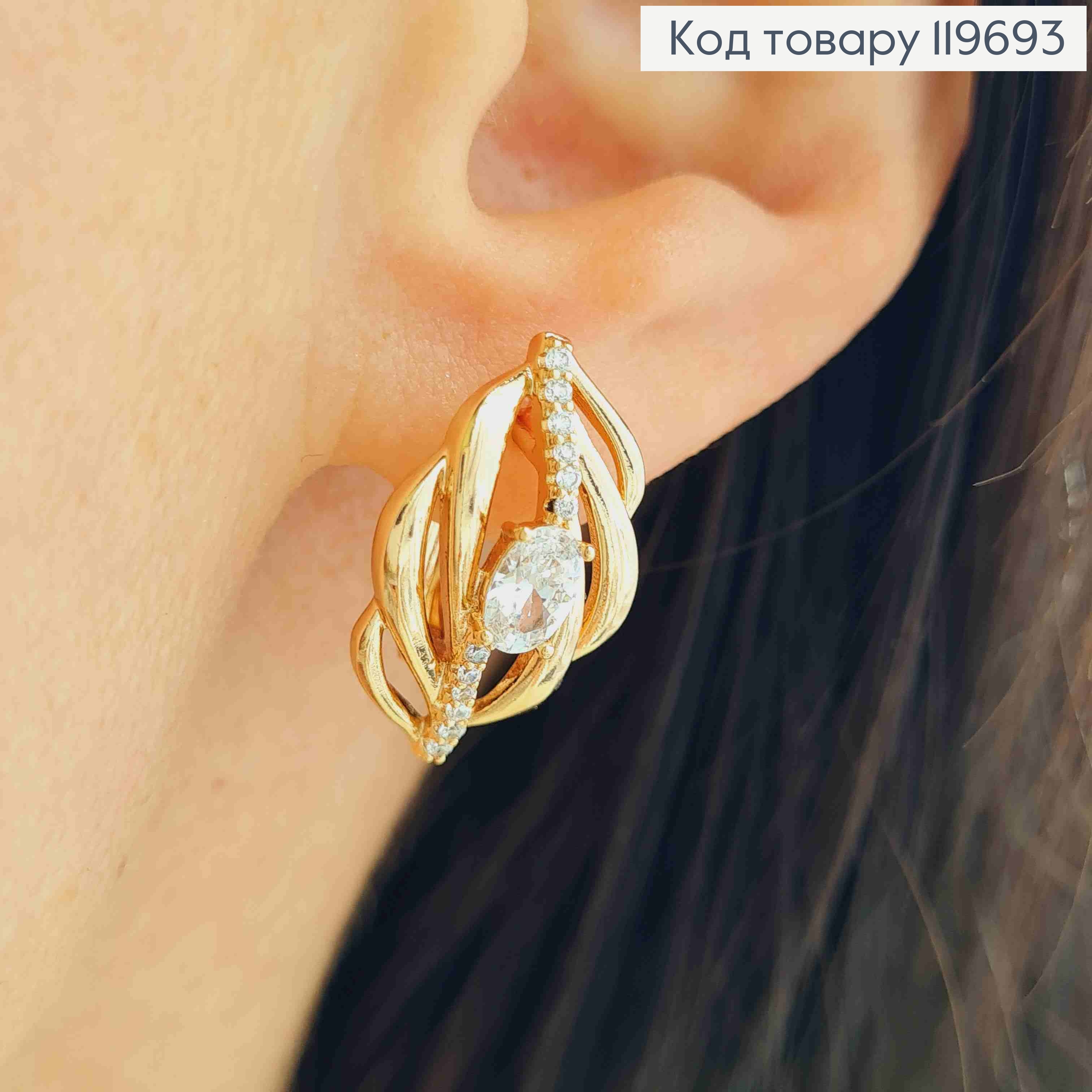 Серьги "Дыхание ветра" с Блестящими камнями, длина 2,4см, английская застежка, Xuping 18К 110208 фото