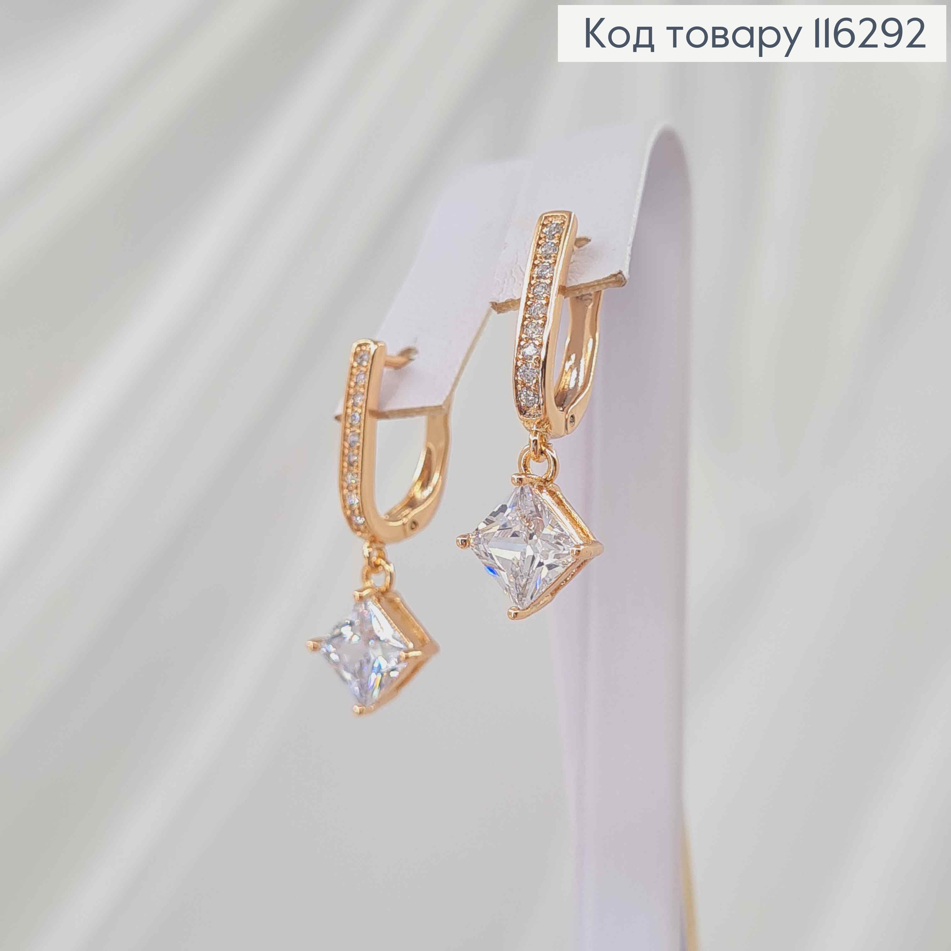 Серьги с квадратным блестящим камнем, 1,9см, английская застежка, Xuping 18K 110257 фото