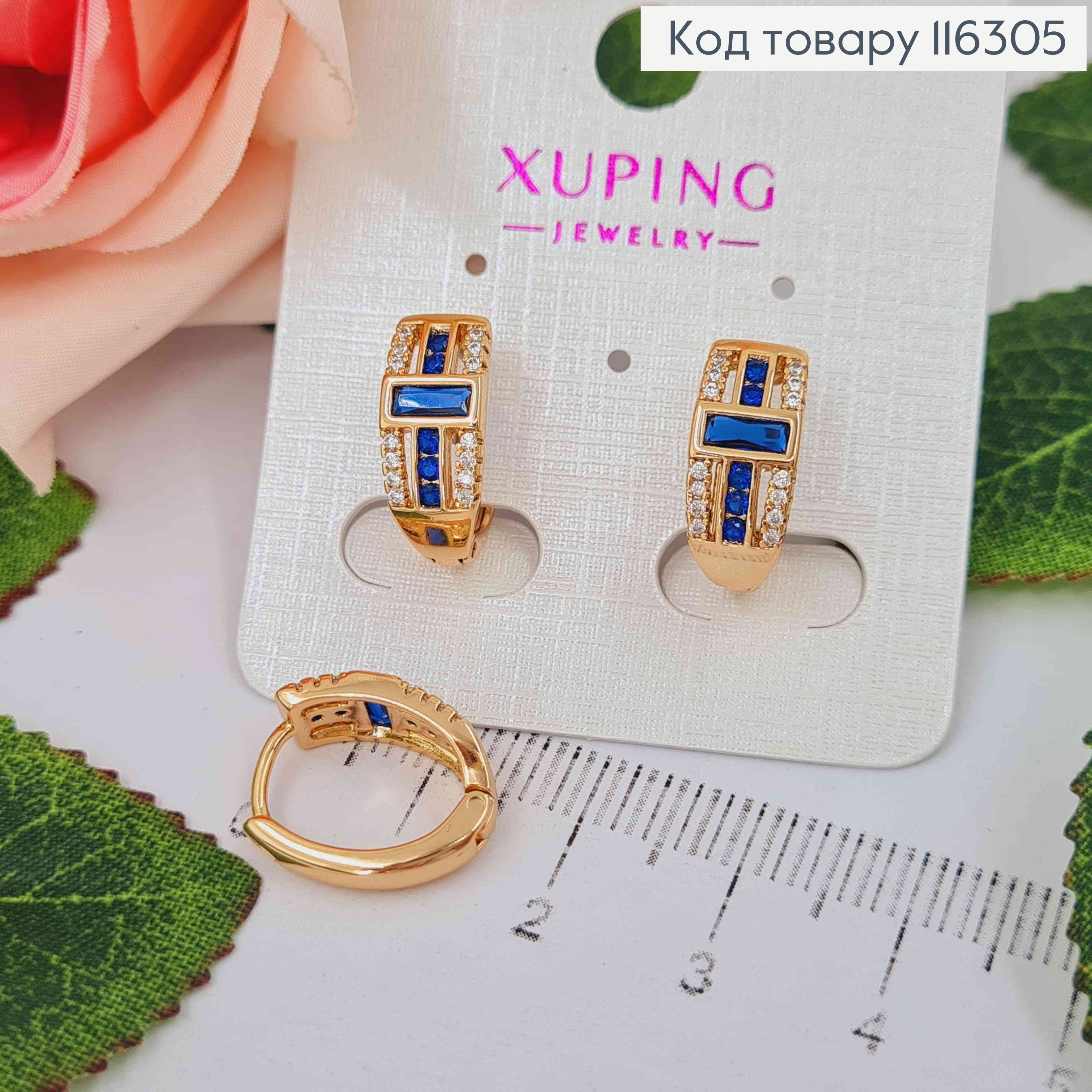 Серьги "Лоренцо" с синим витражным камнем, 1,5см, англ. Xuping 18K