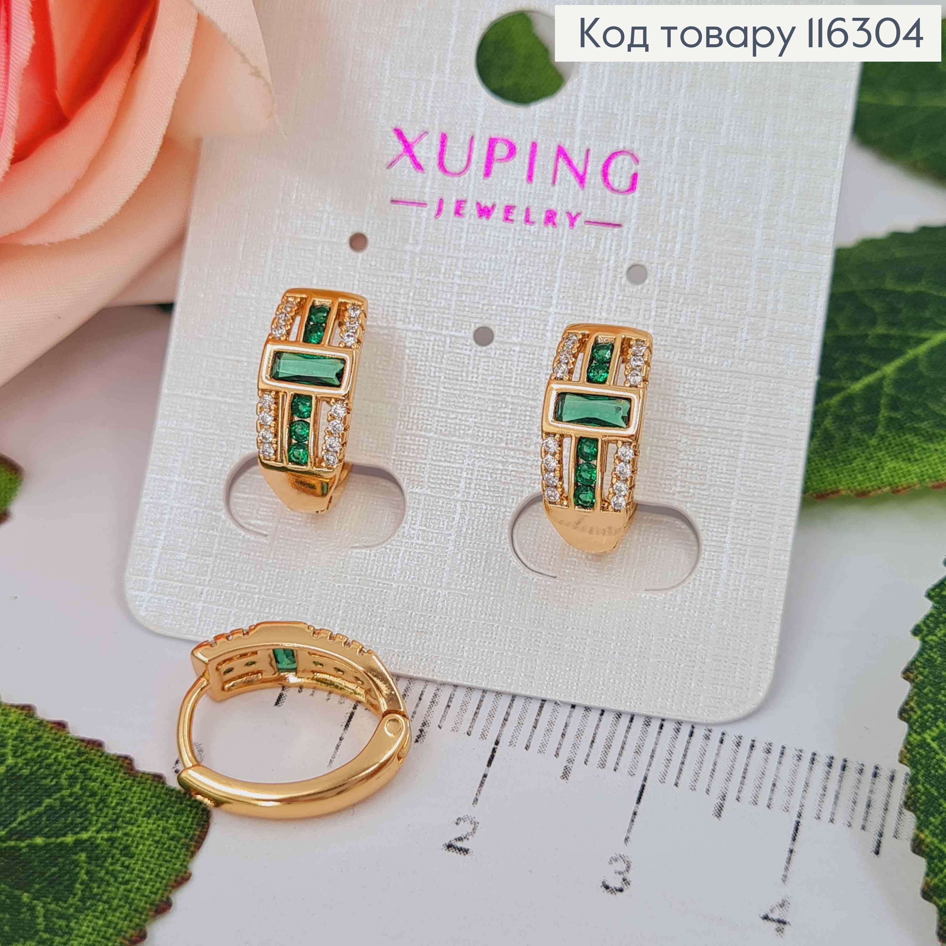Серьги "Лоренцо" с зеленым витражным камнем, 1,5см, англ. Xuping 18K