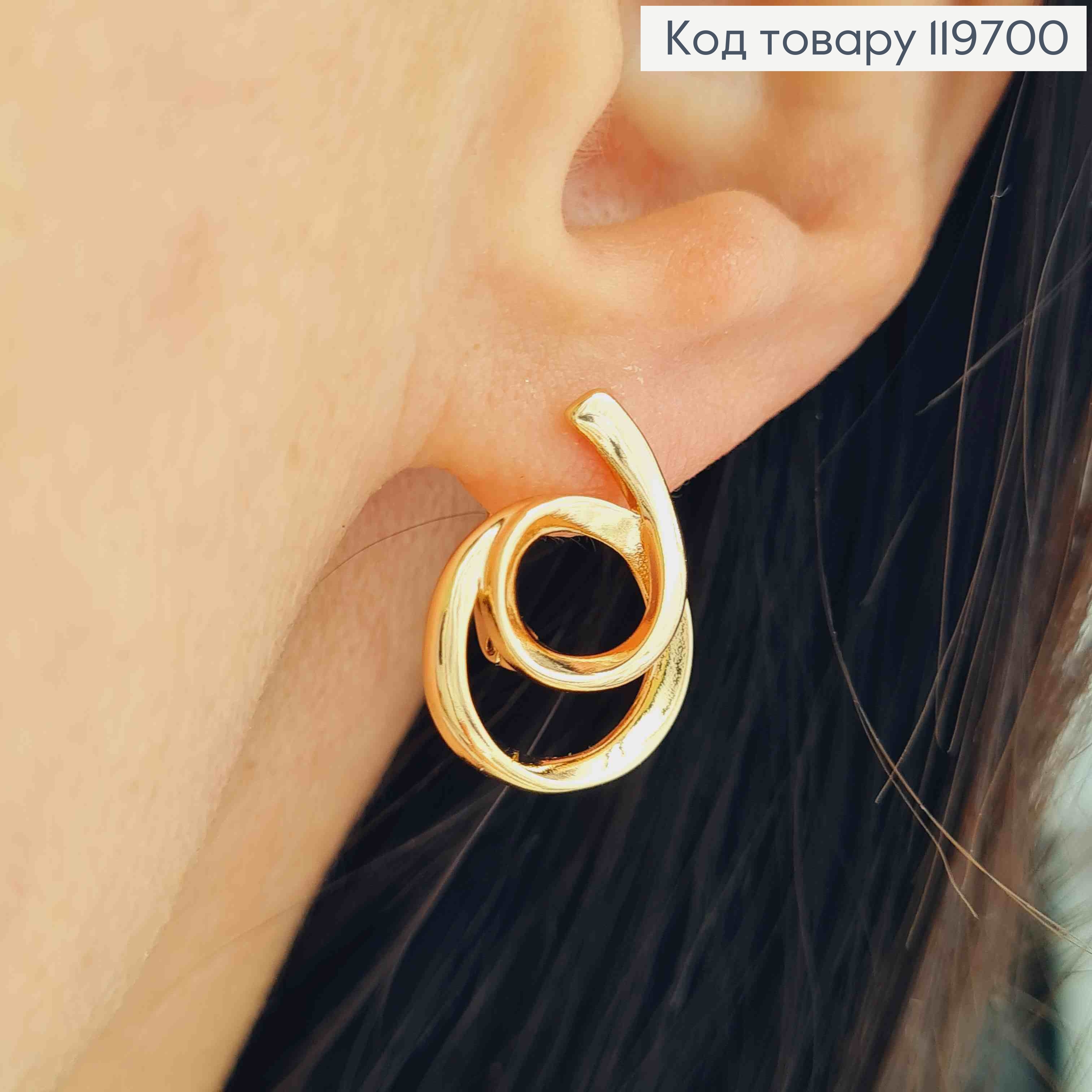Серьги кольца "Овальные" фактурные, ширина 2мм, длина 1,7см, Xuping 18К. 110197 фото