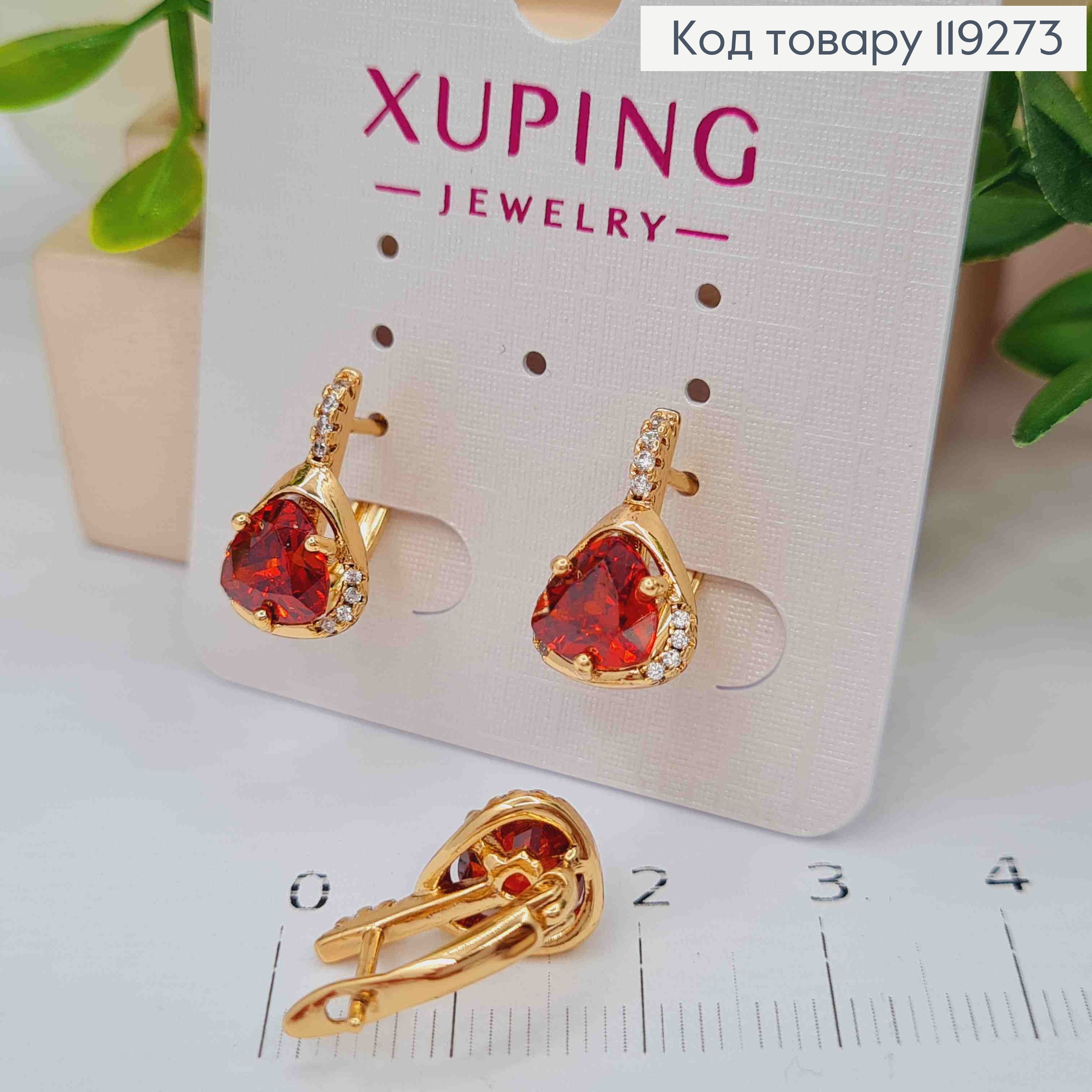 Серьги "Магические" с Красным камнем, длина 1,6см, английская застежка, Xuping 18K