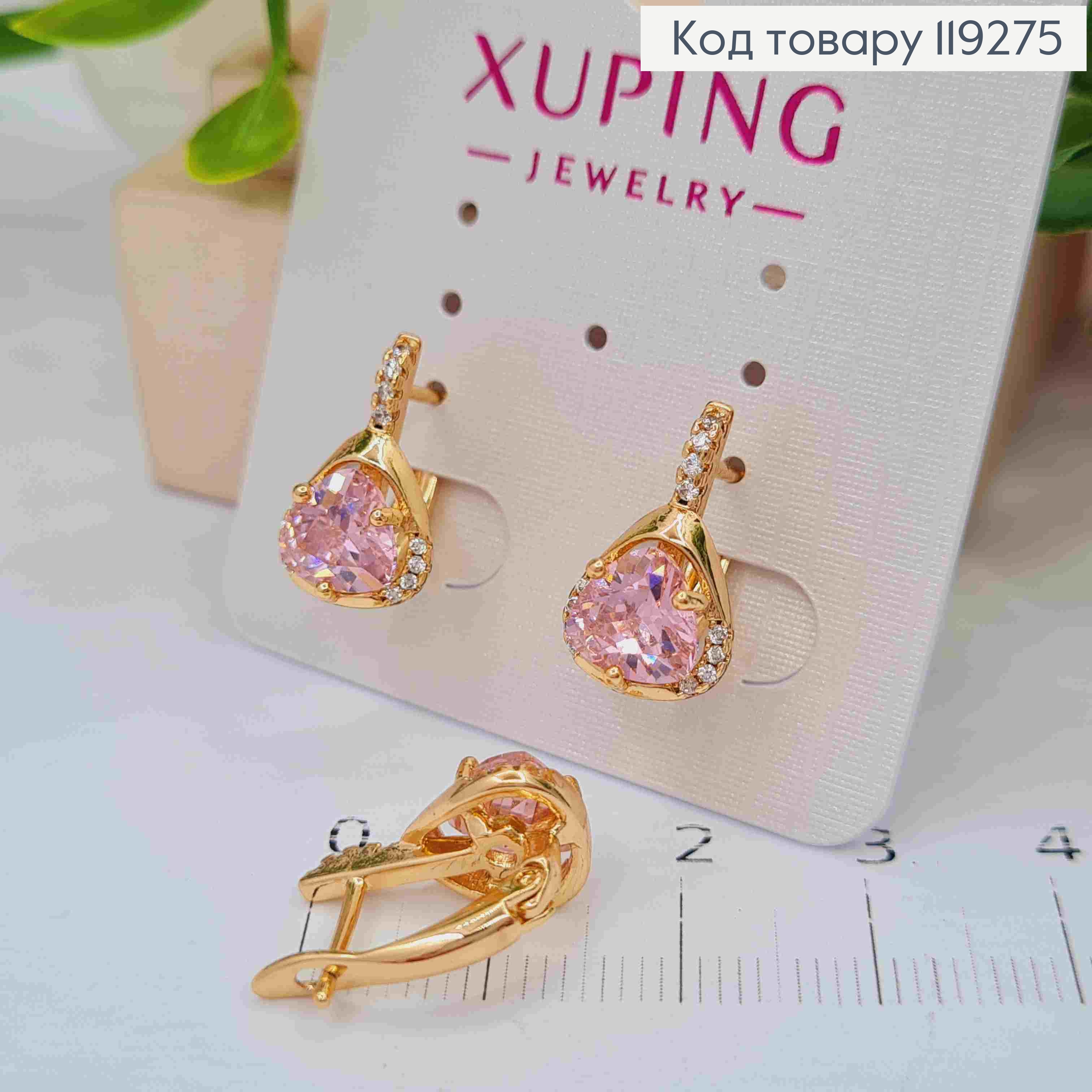 Серьги "Магические" с Розовым камнем, длина 1,6см, английская застежка, Xuping 18K