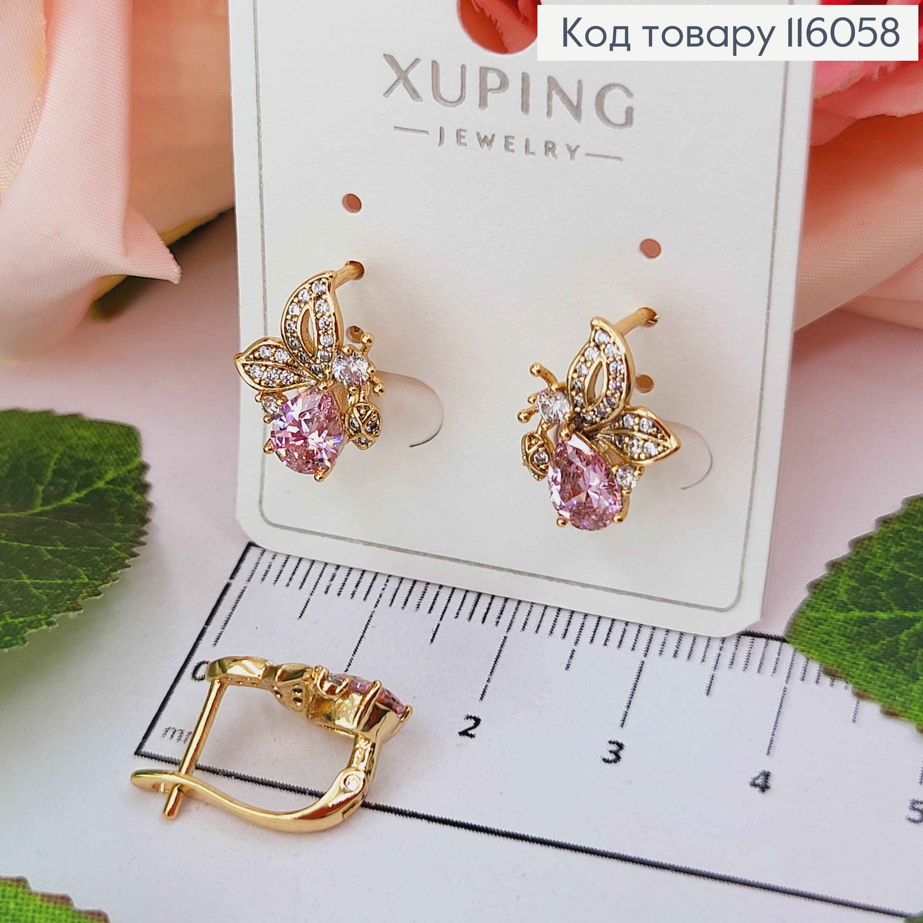Серьги "Бабочка", с большим розовым камнем, 1,5см, англ. зам. Xuping 18K