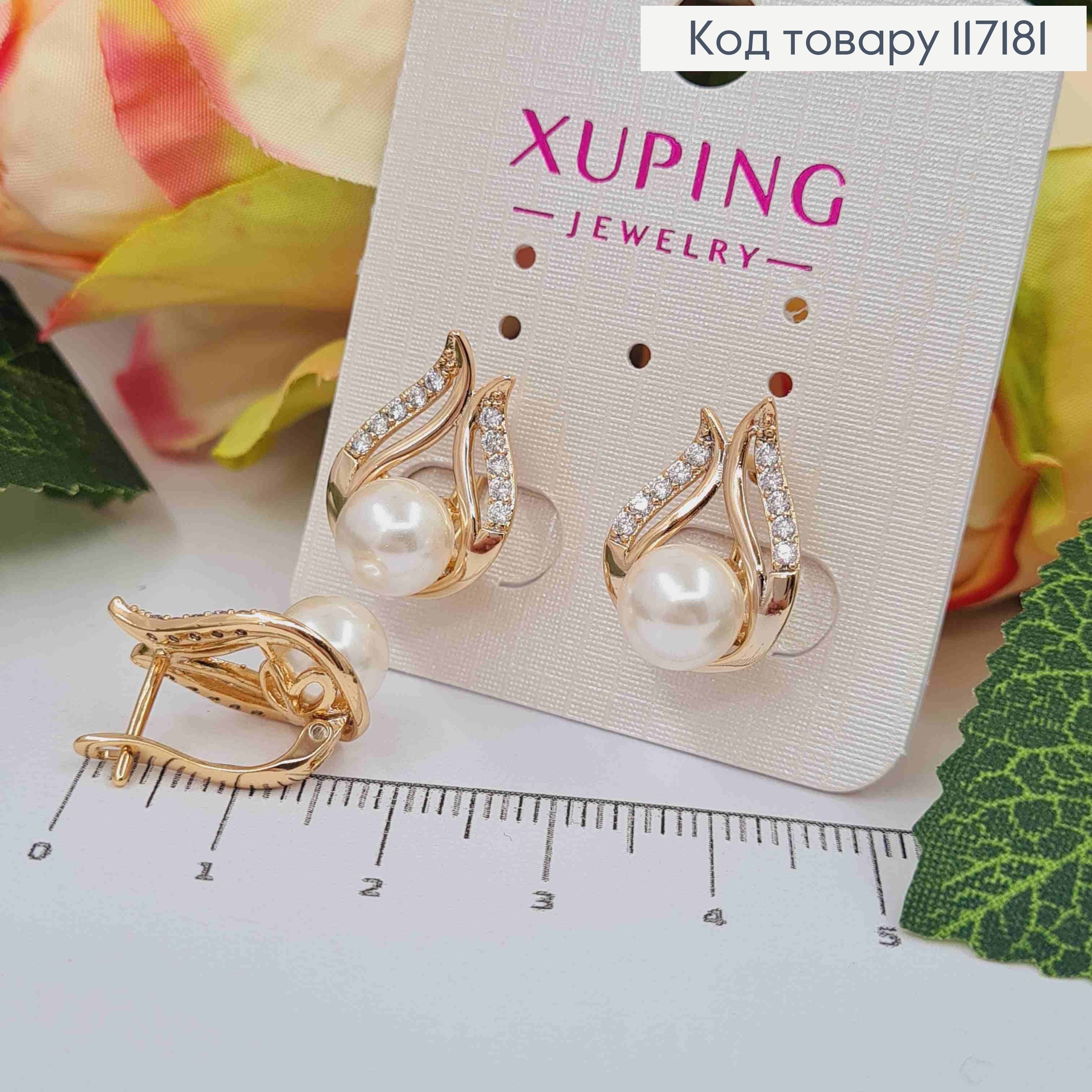 Серьги "Мирные" с жемчужиной и камешками, размер 1,7*1,2см, английская застежка Xuping 18K