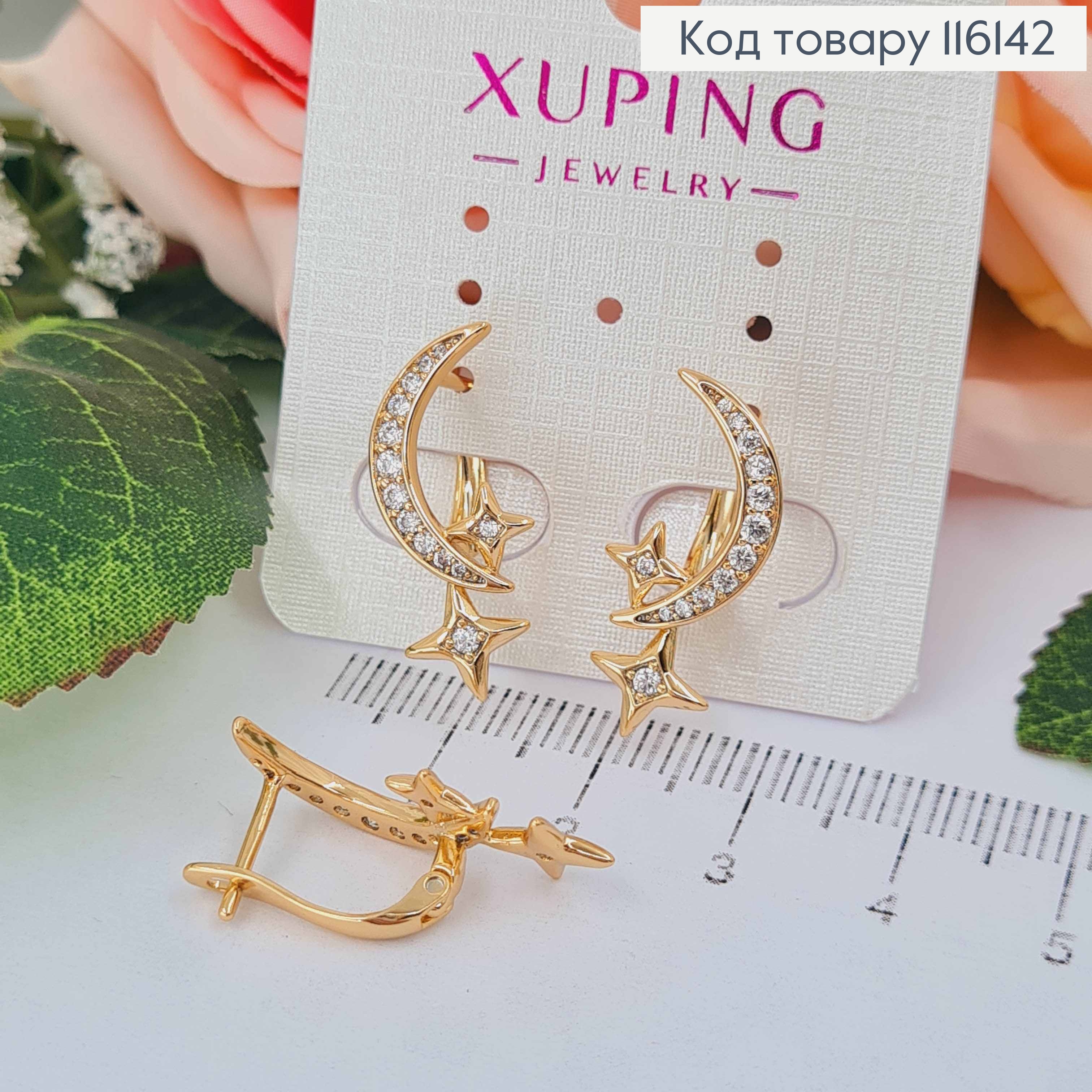 Серьги, "Луна и звезды", в камнях, 2,5см, англ. застежка, Xuping 18К