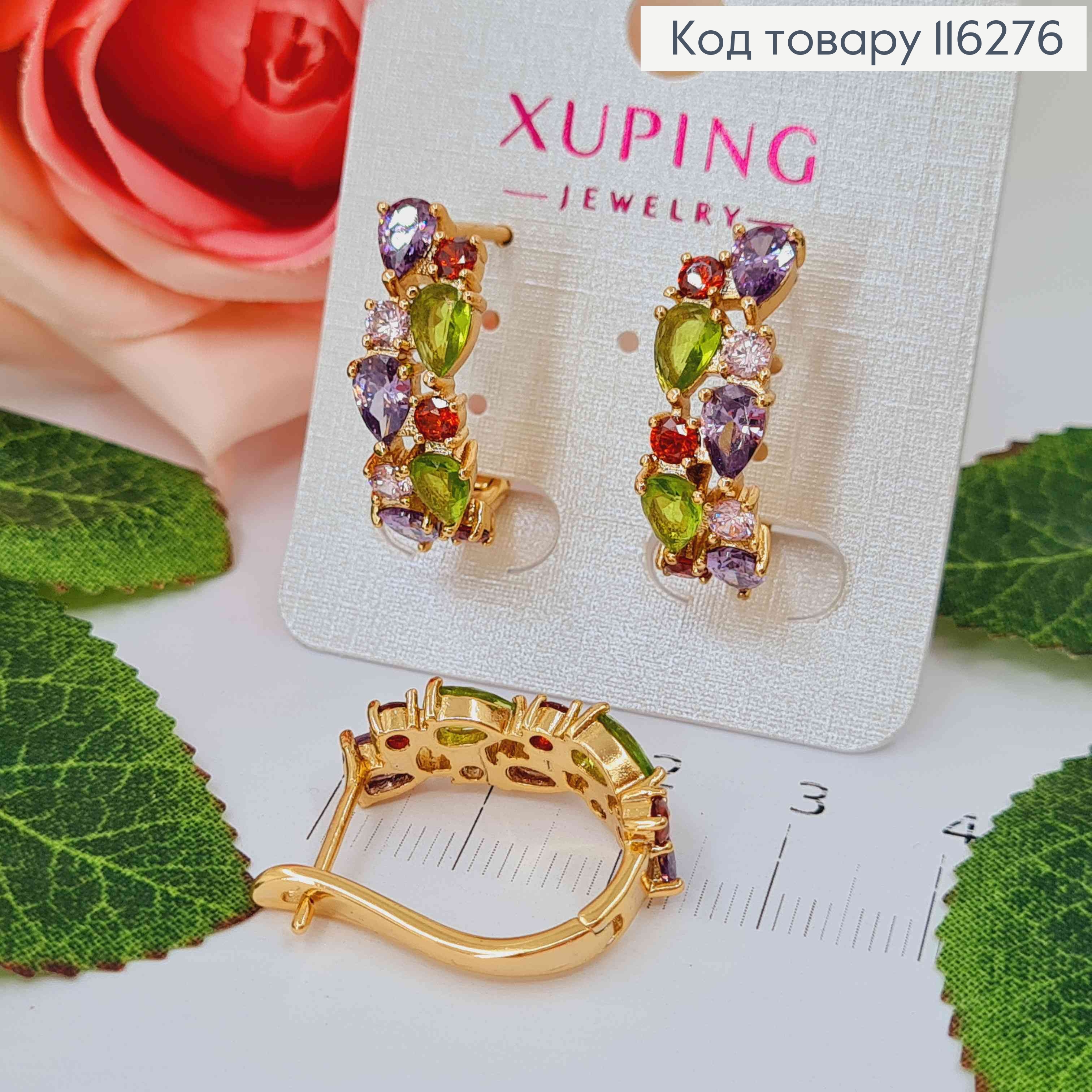 Серьги "Вдохновение" с цветными камешками(темными) 2,3см, англ. зам. Xuping 18К
