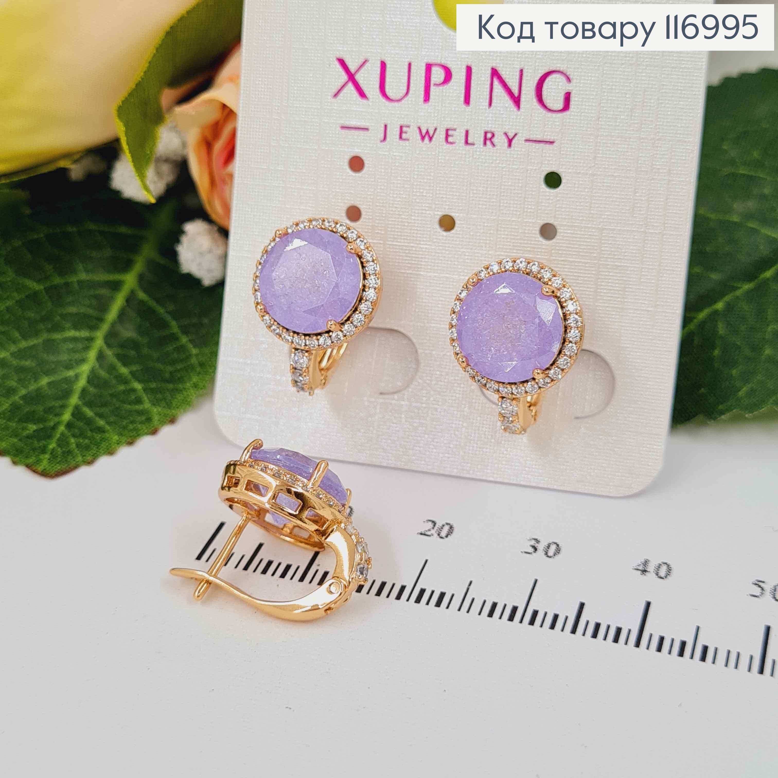 Серьги, "Небесный глаз" с камешком Лилового цвета, 1,5см. англ. зам, Xuping 18К