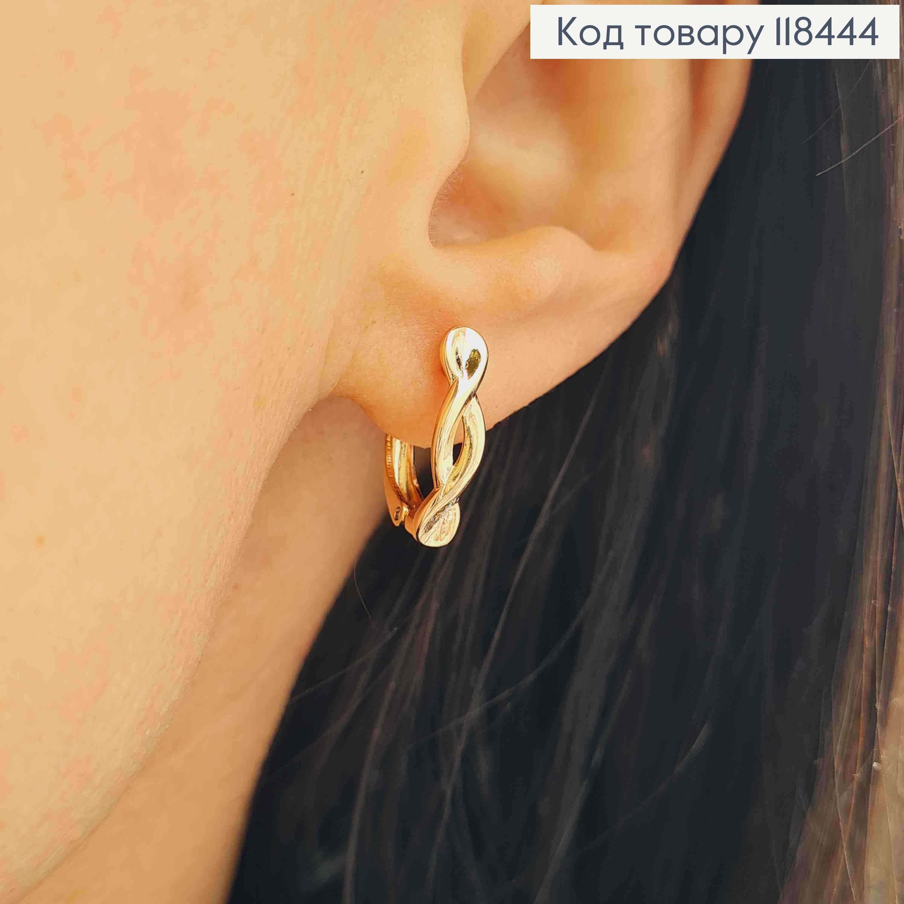 Серьги "Бесконечность" с Блестящими камешками, длина 1,6см, английская застежка, Xuping 18К 110207 фото