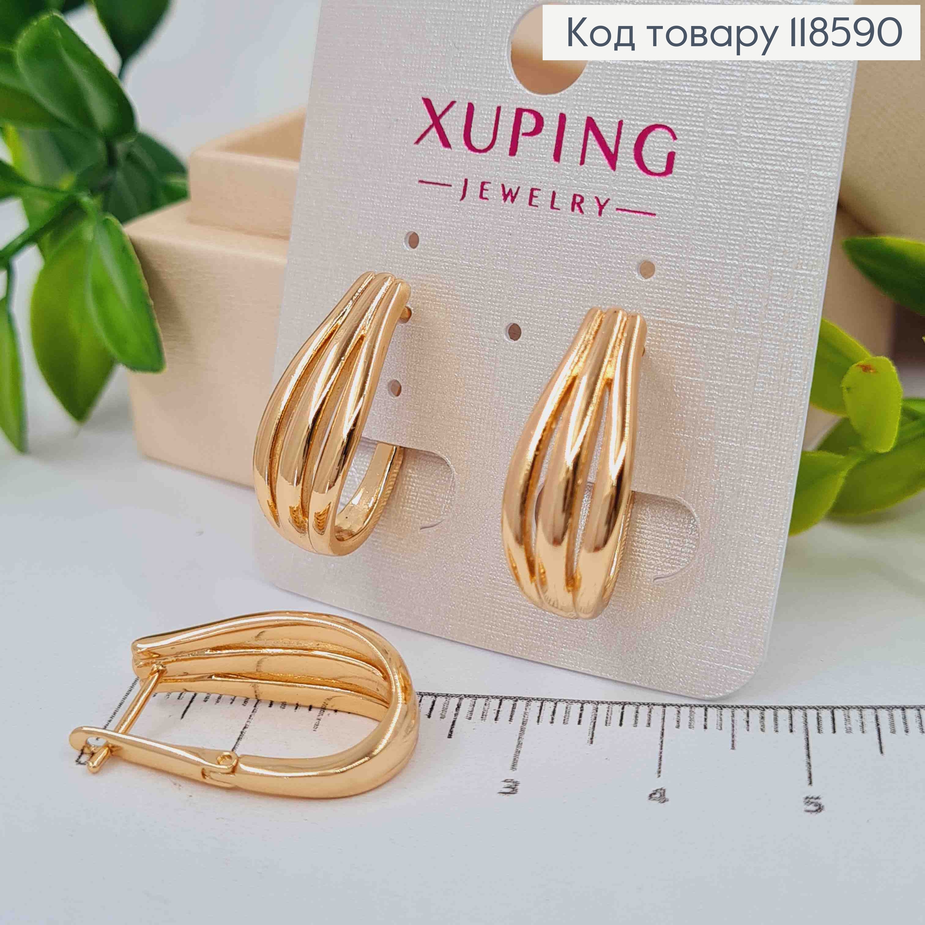 Серьги кольца "Овальные" фактурные, ширина 2мм, длина 1,7см, Xuping 18К. 110197 фото