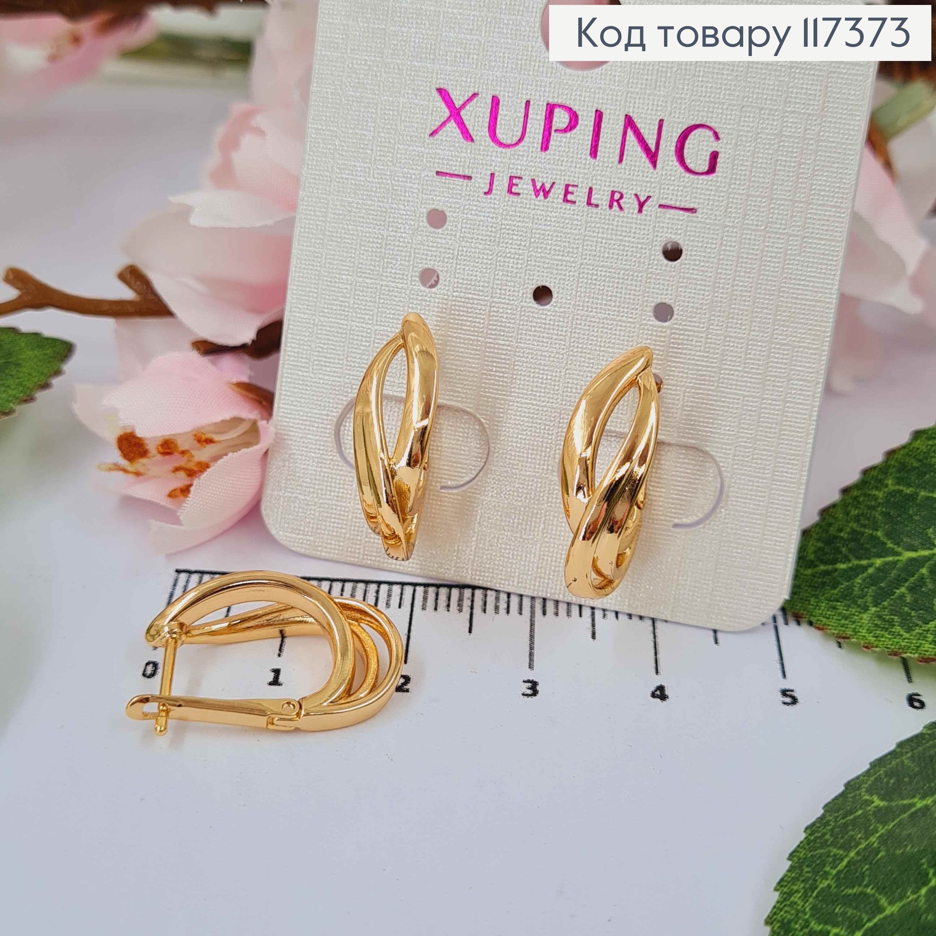 Серьги Овальные, длина 2см, англ застежка, XUPING 18K