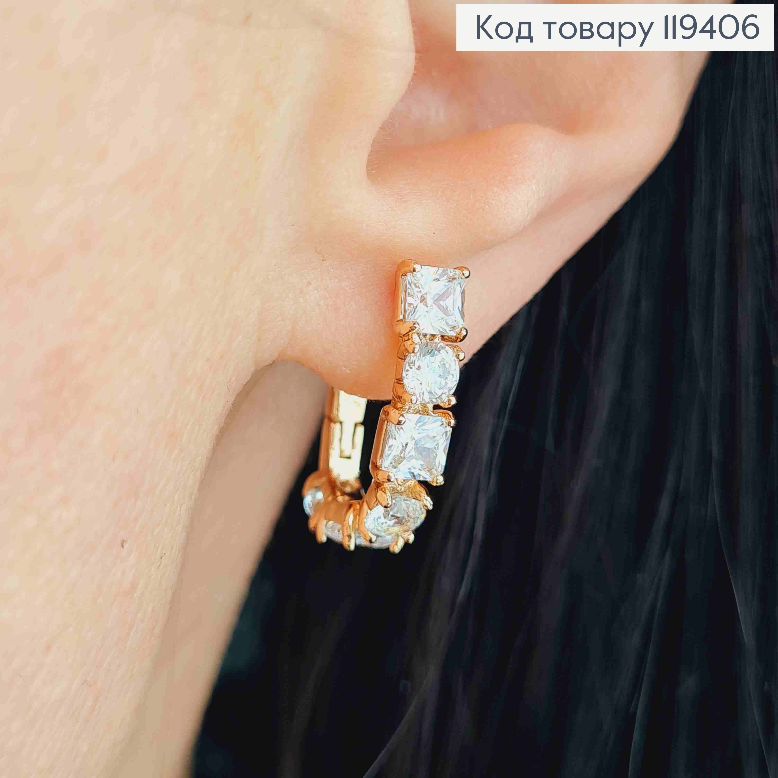 Серьги кольца "Прямоугольные" украшены Блестящими камешками, длиной 2,4см, застежка заколка, Xuping 18К 110199 фото