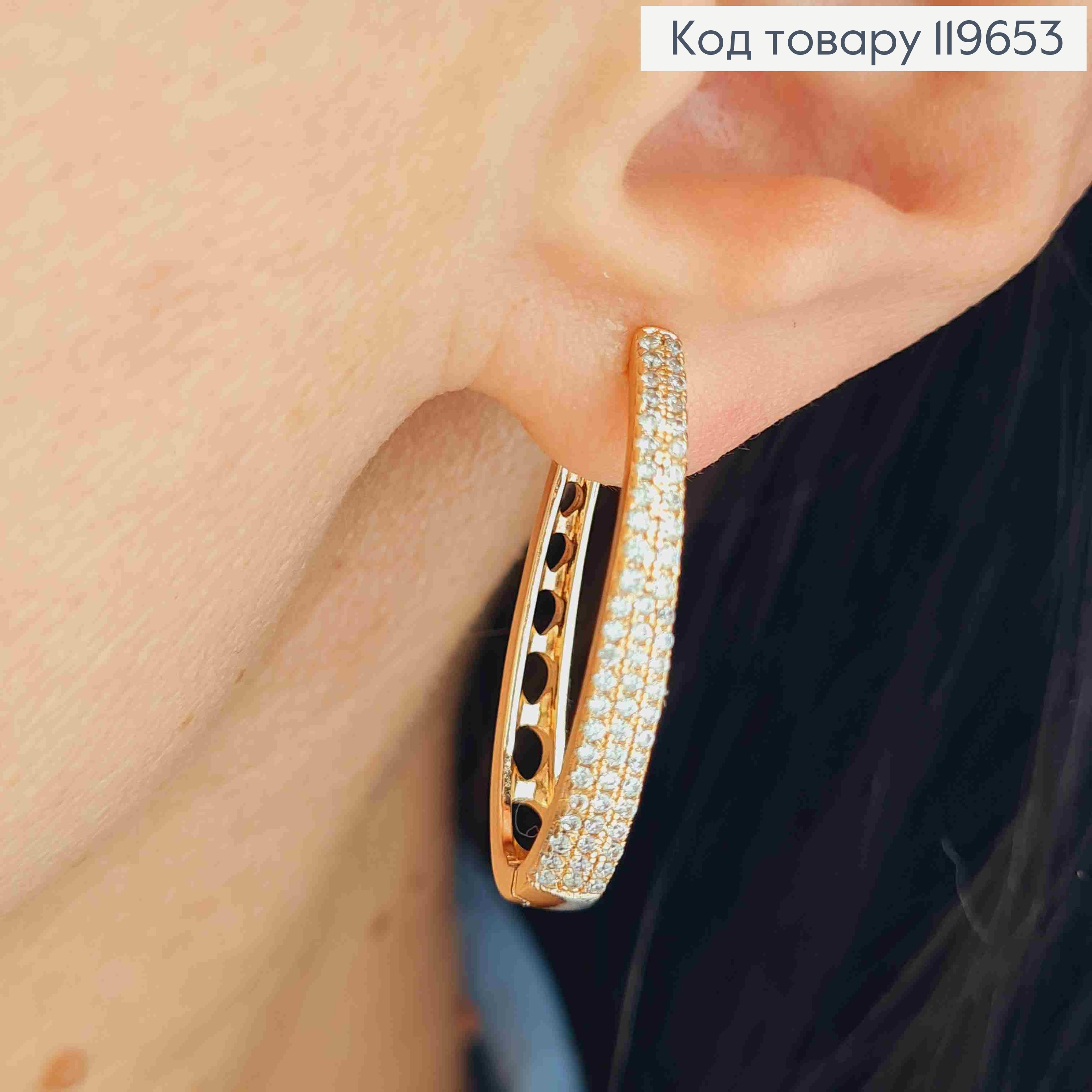 Серьги кольца "Овальные" украшены Блестящими камешками, ширина 7мм, длина 1,7см, Xuping 18К. 110198 фото