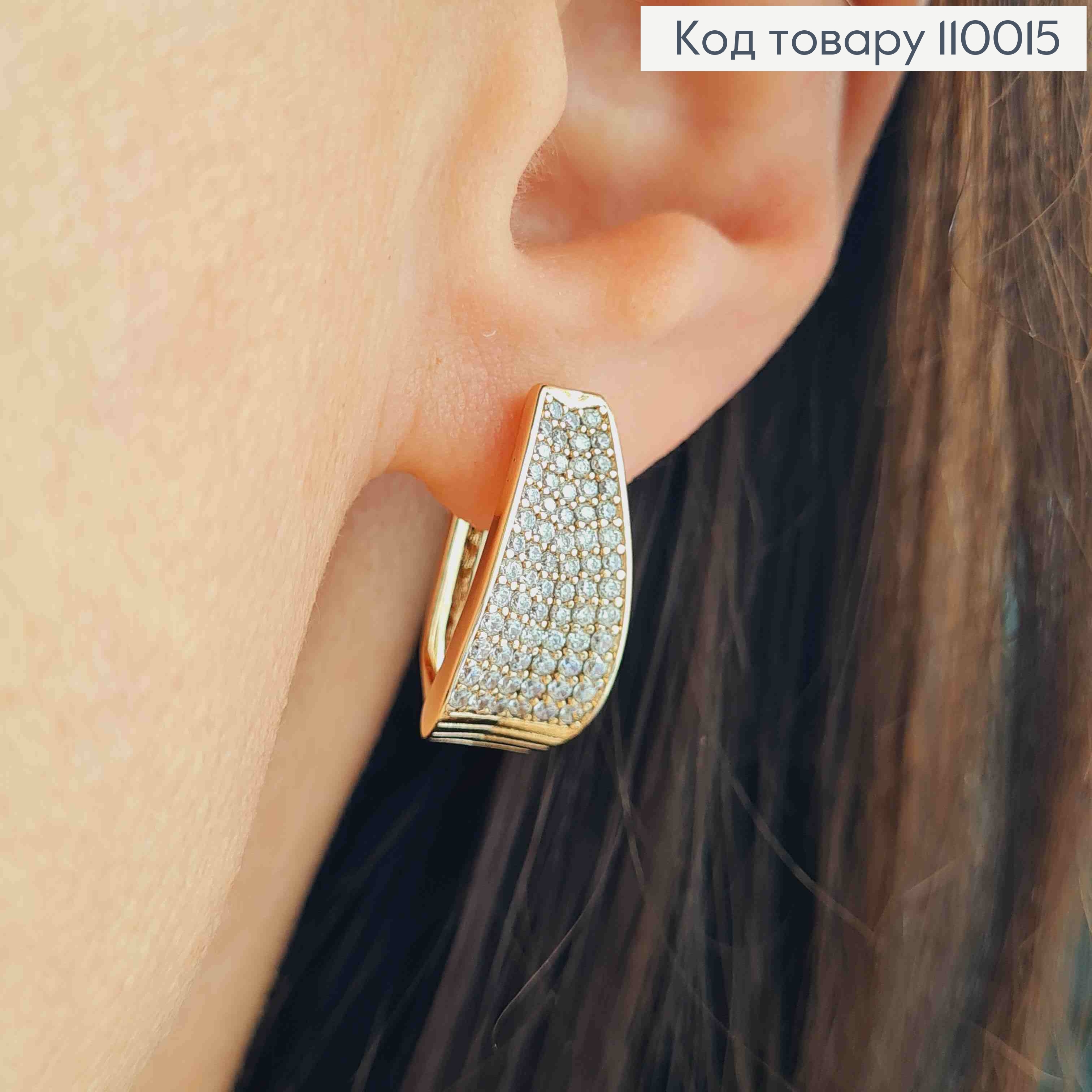 Серьги кольца "Прямоугольные" украшены Блестящими камешками, длиной 2,4см, застежка заколка, Xuping 18К 110199 фото
