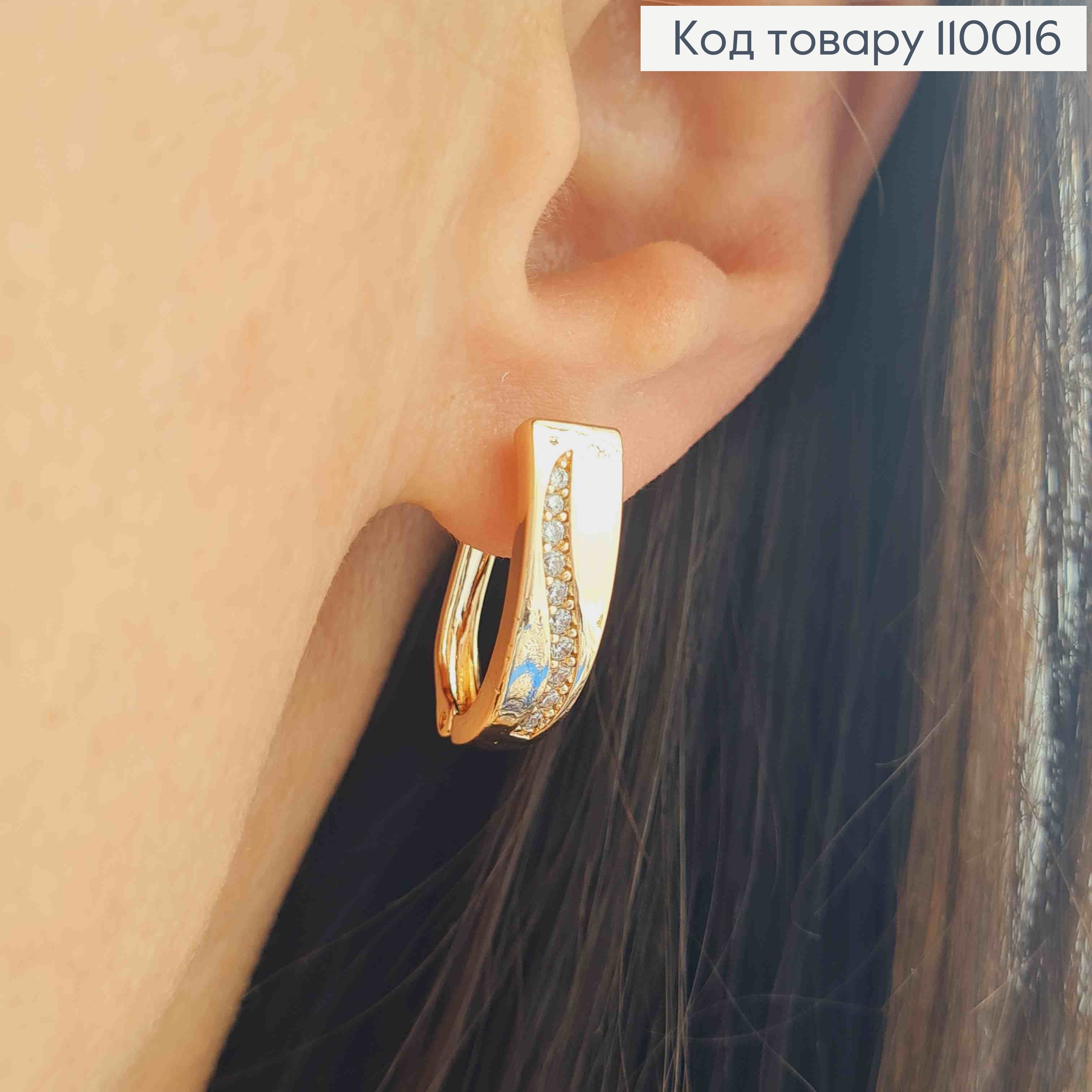 Серьги "Бесконечность" с Блестящими камешками, длина 1,6см, английская застежка, Xuping 18К 110207 фото