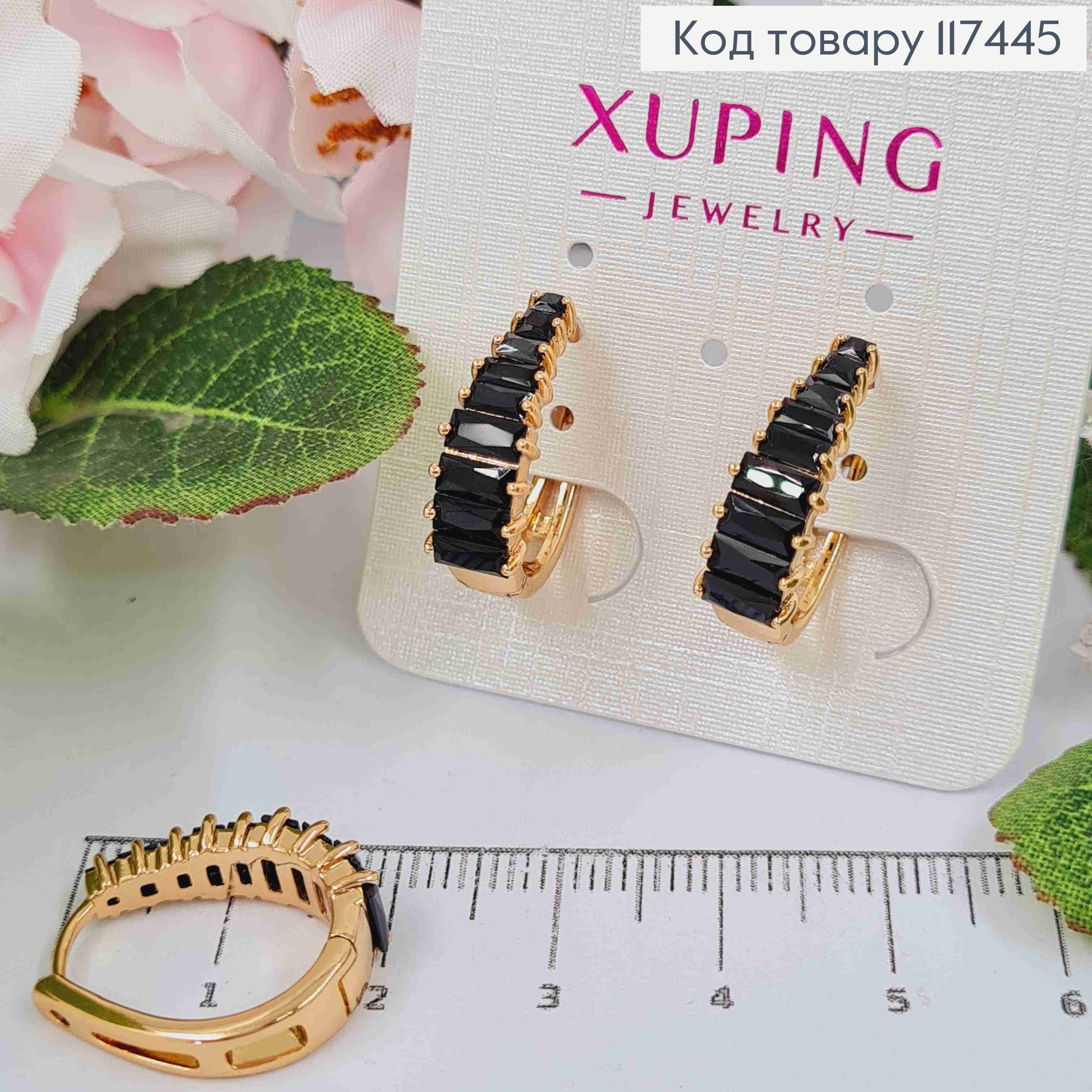 Серьги овальные, с камешками в один ряд Черного цвета, длина 1,9см, XUPING 18K