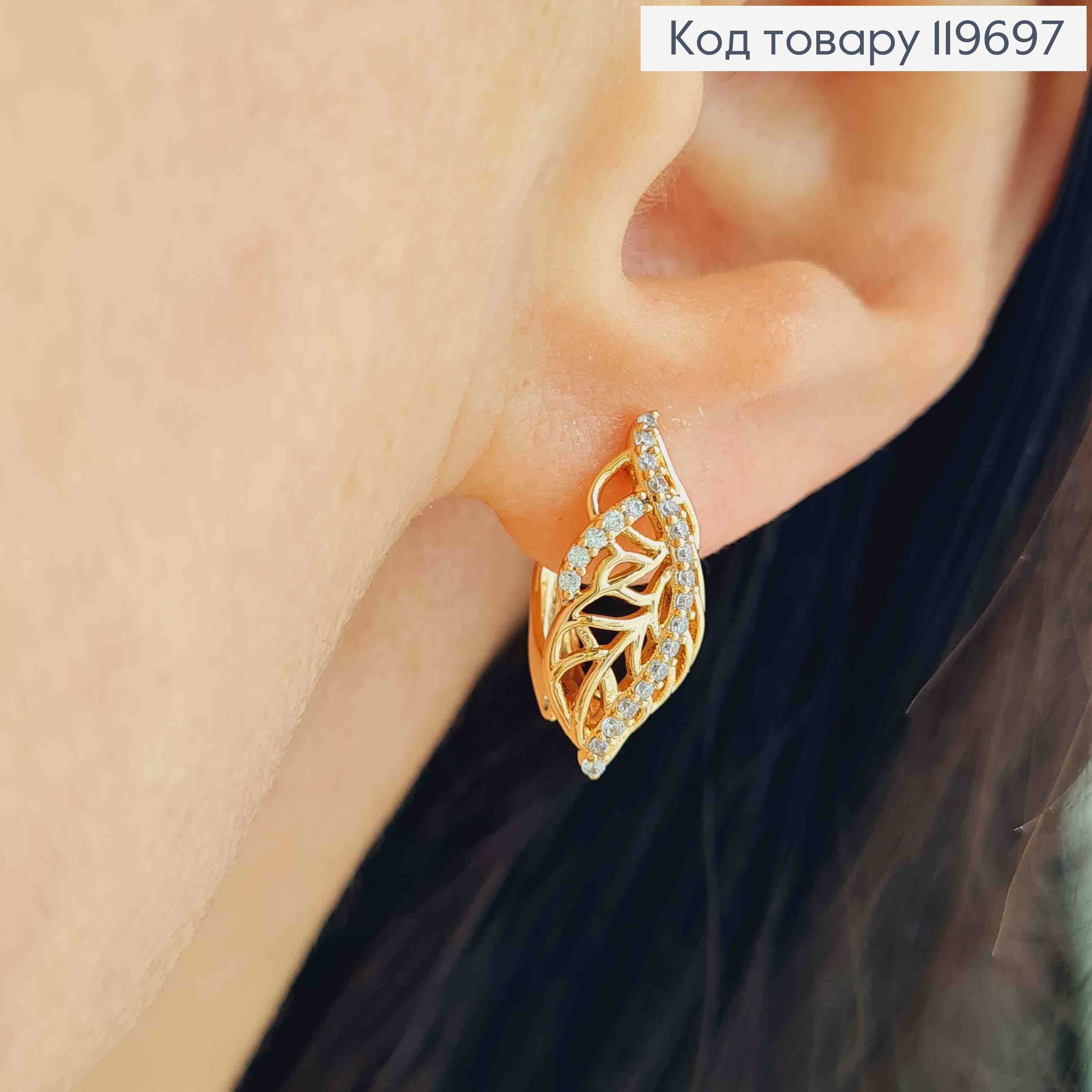Серьги "Пальмовые Листья" украшены Блестящими камешками, дл. 1,7см, англ. застежка, Xuping 18К